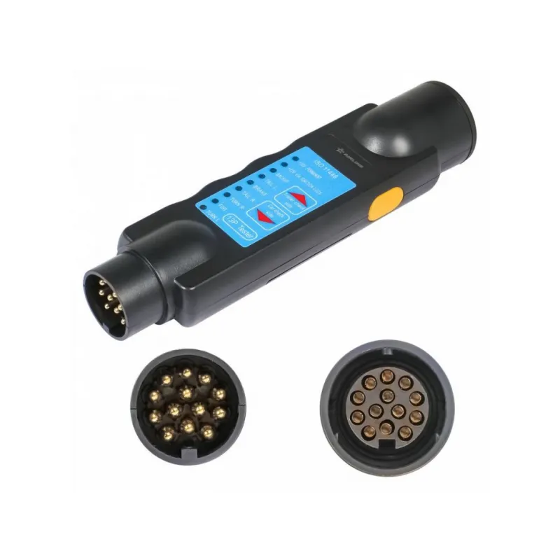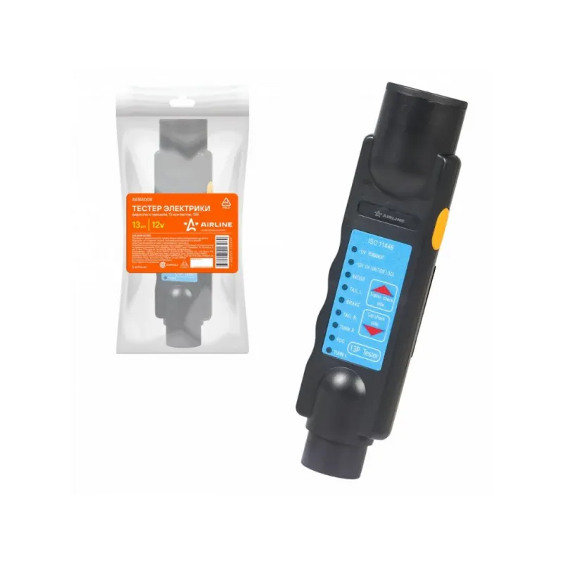 Тестер электрики фаркопа и прицепа 13 контактов 12В Описание: Тестер электрики фаркопа и прицепа 13 контактов 12 В AIRLINE AEBA008. Тестер питается от батарейки типа "Крона" (в комплект не входит). Исправные электрические цепи отображаются зажиганием соответствующих светодиодных индикаторов. Назначение: - Проверка правильности коммутации электропроводки розетки фаркопа на стороне тягача. - Проверка исправности цепей электропроводки и ламп накаливания прицепа. Элемент питания: - Для питания устройства применяется сменный элемент питания типа "Крона" 9B 6LR61; Особенности: * Качественный механизм; * Количество 7 контактов; Инструкция по эксплуатации в комплекте. Товар официального производителя AIRLINE. Характеристики: Артикул: AEBA008 Количество контактов: 13 Материал корпуса: пластик Комплектация: Тестер - 1 шт Инструкция - 1 шт Гарантия: от 1 года.