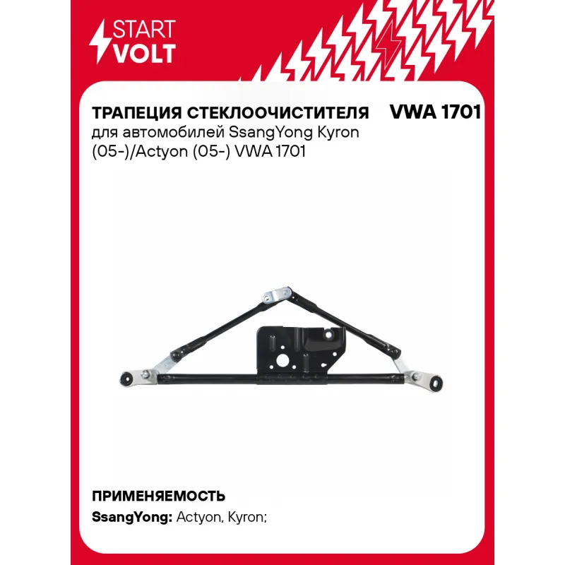 Трапеция стеклоочистителя для автомобилей SsangYong Kyron (05-)/Actyon (05-) Характеристики: Артикул: VWA 1701 OEM номера: 7821109001, 7821109000, 7821109002 Материал: Штампованная сталь Сопутствующий товар: Моторедукторы переднего стеклоочистителя: VWF 1701 Количество на автомобиль: 1 Подходит для авто: SsangYong Actyon (05-), Kyron (05-), Actyon (05-), Kyron (05-) Для проверки применяемости отправьте VIN автомобиля через вкладку "Есть вопросы о товаре?" Комплектация: Трапеция стеклоочистителя - 1 шт Паспорт изделия/гарантийный талон - 1 шт Гарантия: от 1 года.