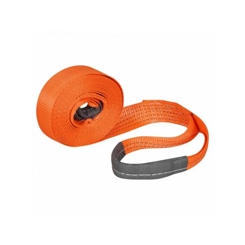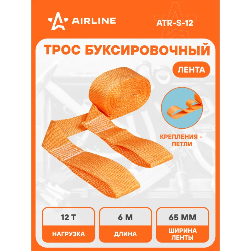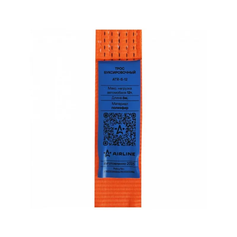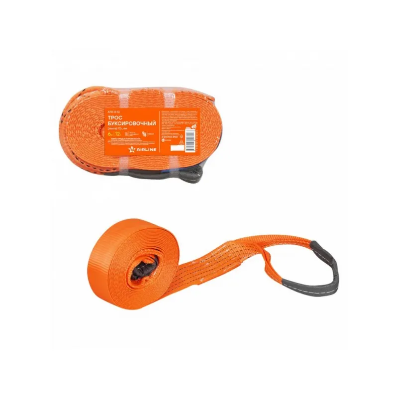 Трос буксировочный (лента) 12 т, 6 м, без крюков Описание: Буксировочный трос с нагрузкой до 12 т и длиной 6 м представляет собой высококачественное средство для аварийной буксировки и помощи транспортным средствам в сложных ситуациях. Этот трос-лента изготовлен из специальных полипропиленовых нитей. Трос обладает морозостойкостью и влагостойкостью, что позволяет использовать его в различных погодных условиях без потери производительности. Благодаря своей надежности и нагрузке в 12 т, этот трос идеально подходит как для легковых автомобилей, так и для коммерческого транспорта. Его длина соответствует Правилам дорожного движения Российской Федерации, что обеспечивает соблюдение стандартов безопасности на дорогах. Этот буксировочный трос станет незаменимым инструментом для водителей в случае нештатных ситуаций на дорогах. Преимущества: -Легко складывается для удобства хранения; -Высокое качество прошивки; -Простота применения. Из-за невозможности обеспечить абсолютно плавную буксировку, нагрузка на трос может превышать массу автомобиля. РЕКОМЕНДУЕМ использовать трос с разрывной нагрузкой, превышающей массу буксируемого автомобиля : данный трос рекомендован для буксировки транспортных средств со снаряженной массой до 3,6 тонн. НЕ ИСПОЛЬЗУЙТЕ буксировочный трос для эвакуации застрявших автомобилей. Для этой цели лучше использовать специализированную динамическую (рывковую) стропу. В линейке AIRLINE, вы найдете широкий ассортимент высококачественных автотоваров, автозапчастей, автомобильные наборы, аксессуары для автомобиля на любой вкус, тросы буксировочные/динамические, грузовые стропы. Мы гарантируем качество и надежность наших товаров. Характеристики: Артикул: ATR-S-12 Крепление: Петли Ширина ленты, мм: 65 Длина ленты, м: 6 Материал ленты: Полиэфир Длина сшивки, см: 15 Кол-во строчек, шт: 9 Линейная плотность, г/м: 100 Нагрузка, т: 12 Загиб на петлю, см: 30 Комплектация: Трос буксировочный - 1 шт Гарантия: от 1 года.