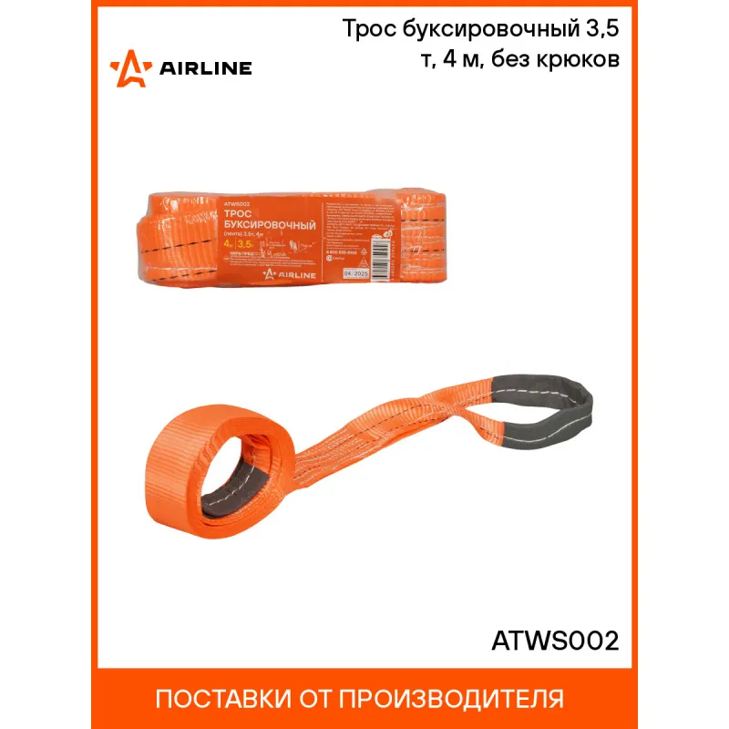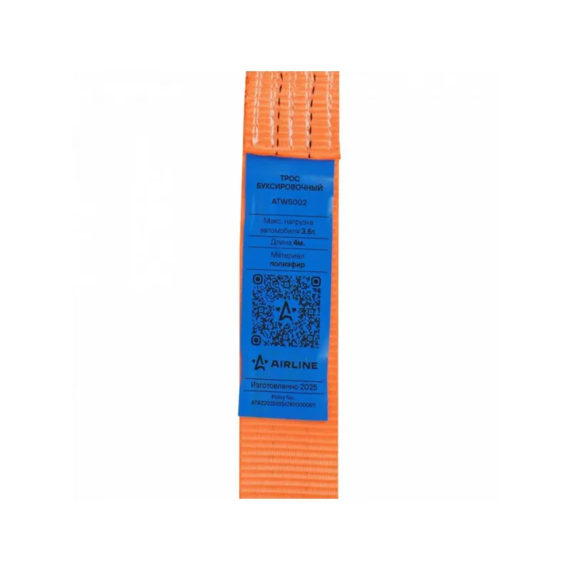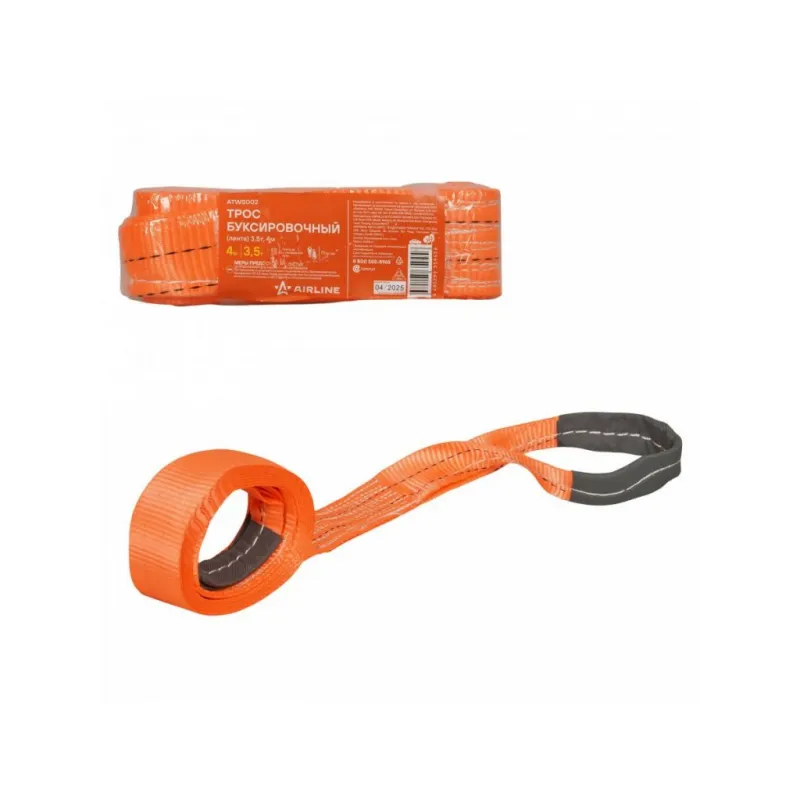 Трос буксировочный (лента) 3,5 т, 4 м, без крюков Описание: Буксировочный трос AIRLINE 3,5 тонны 4 метра без крюков — это универсальное и практичное решение для буксировки автомобилей. Он изготовлен из прочной полиэфирной нити, что обеспечивает ему высокую прочность и устойчивость к нагрузкам. Этот трос можно использовать с дополнительными аксессуарами, такими как шаклы для надежного крепления, которые можно приобрести отдельно. Подходящие сопутствующие артикулы: ASHA001, ASHA002, ASHA005 и ASHA006. Трос хорошо устойчив к воздействию влаги, морозу и ультрафиолетовым лучам, что делает его надежным в любых климатических условиях. Легкий и компактный, он легко сматывается и занимает минимум места в багажнике. Характеристики: Артикул: ATWS002 Крепление: Петли Ширина ленты, мм: 50 Загиб на петлю, см: 10 Длина ленты, м: 4 Материал ленты: Полиэфир Длина сшивки, см: 6 Кол-во строчек, шт: 8 Линейная плотность, г/м: 49 Нагрузка, т: 3,5 Комплектация: Трос буксировочный - 1 шт Гарантия: от 1 года.