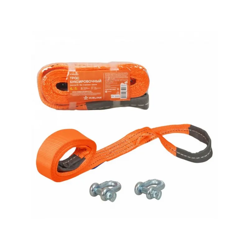 Трос буксировочный (лента) 5 т, 4 м, 2 металл. шакла Описание: Буксировочный трос AIRLINE 5 тонн 4 метра с шаклами — это идеальный выбор для тех, кто ищет надежность и дополнительную прочность при буксировке автомобилей. Шаклы обеспечивают надежное и безопасное соединение троса с транспортируемым автомобилем, что особенно важно при интенсивных нагрузках. Изготовленный из высокопрочной полиэфирной нити, этот трос гарантирует отличную прочность, он устойчивость к воздействию влаги, ультрафиолетового излучению и морозу. Легко сматываемый в компактный рулон, этот трос удобно хранить в багажнике, он не занимает лишнего места, и отлично подходит для использования в любых климатических условиях. Характеристики: Артикул: ATWS003 Крепление: Металлические шаклы Ширина ленты, мм: 55 Загиб на петлю, см: 25 Длина ленты, м: 4 Материал ленты: Полиэфир Длина сшивки, см: 10 Кол-во строчек, шт: 9 Линейная плотность, г/м: 68 Нагрузка, т: 5 Тип шакла: Прямой Нагрузка на разрыв шакла, т: 8 Комплектация: Металлический шакл - 2 шт Трос буксировочный - 1 шт Гарантия: от 1 года.