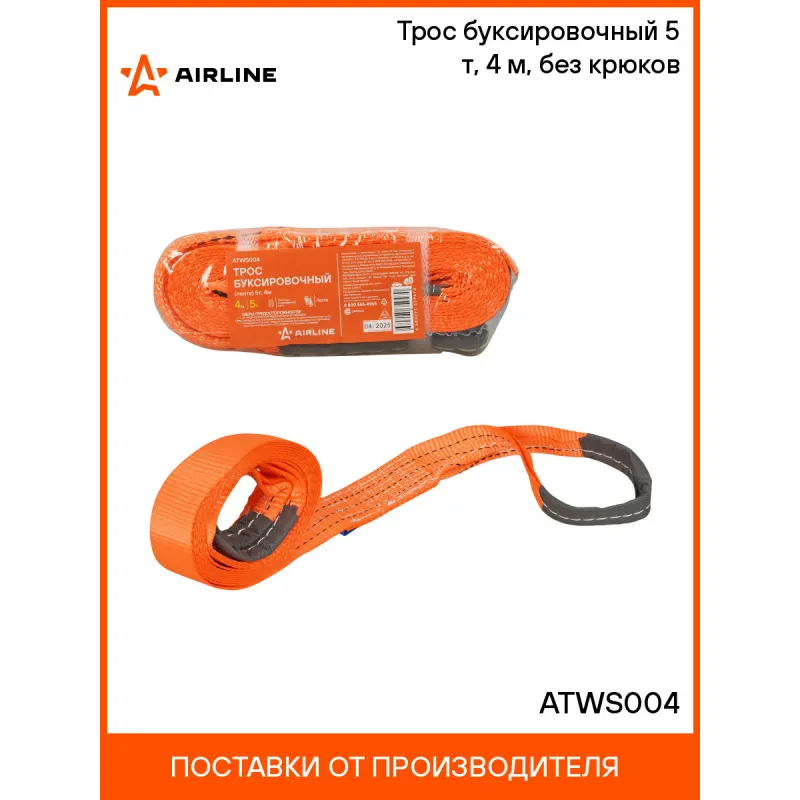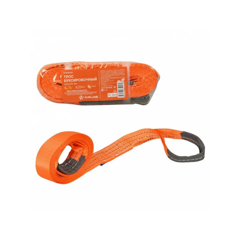 Трос буксировочный (лента) 5 т, 4 м, без крюков Описание: Буксировочный трос AIRLINE 5 тонн 4 метра без крюков — это универсальное и практичное решение для буксировки автомобилей. Он изготовлен из прочной полиэфирной нити, что обеспечивает ему высокую прочность и устойчивость к нагрузкам. Этот трос можно использовать с дополнительными аксессуарами, такими как шаклы для надежного крепления, которые можно приобрести отдельно. Подходящие сопутствующие артикулы: ASHA001, ASHA002, ASHA005 и ASHA006. Трос хорошо устойчив к воздействию влаги, морозу и ультрафиолетовым лучам, что делает его надежным в любых климатических условиях. Легкий и компактный, он легко сматывается и занимает минимум места в багажнике. Характеристики: Артикул: ATWS004 Крепление: Металлические шаклы Ширина ленты, мм: 50 Загиб на петлю, см: 25 Длина ленты, м: 4 Материал ленты: Полиэфир Длина сшивки, см: 10 Кол-во строчек, шт: 9 Линейная плотность, г/м: 68 Нагрузка, т: 5 Комплектация: Трос буксировочный - 1 шт Гарантия: от 1 года.