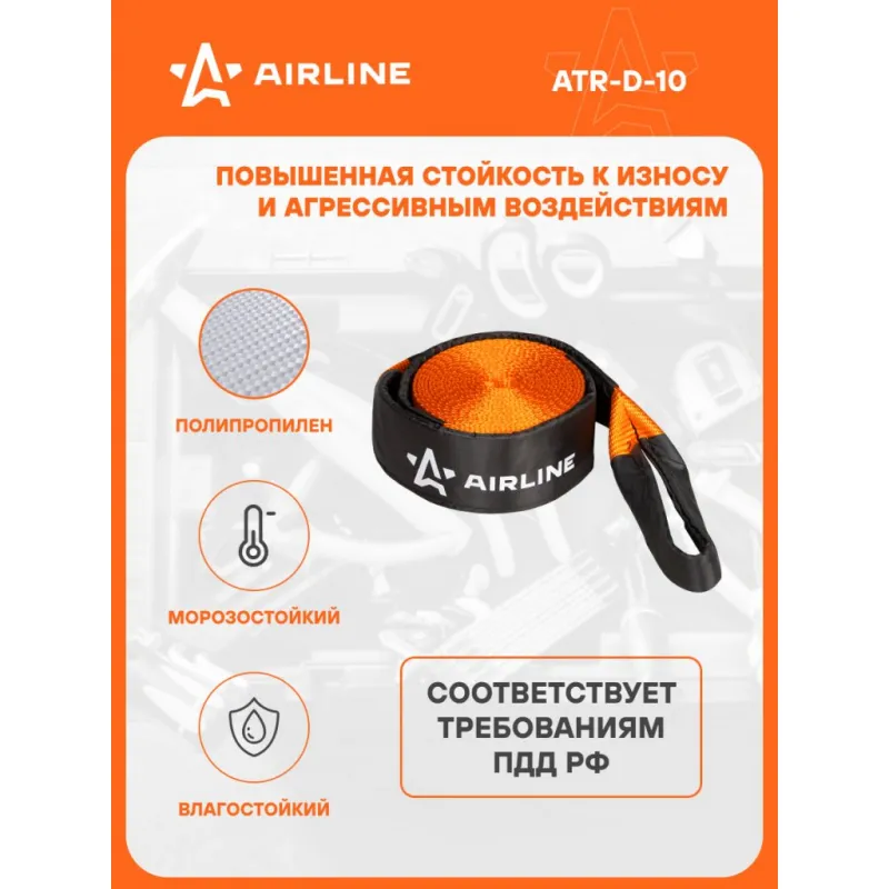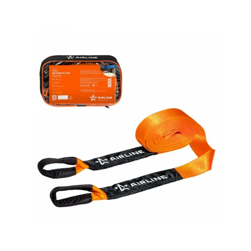 Трос динамический 10 т, 8 м + сумка (стропа рывковая) Описание: Динамический трос с нагрузкой до 10 т и длиной 8 м представляет собой высококачественное изделие российского производства, прошедшее сертификацию согласно стандарту ISO 9001. Этот тип тросов разработан специально для операций по вытаскиванию застрявших транспортных средств. Для использования данного троса, необходимо надежно закрепить его к металлическим буксировочным устройствам на обоих транспортных средствах. Затем, начинать движение с умеренной скоростью в диапазоне 5-10 км/ч. Динамический трос обладает свойством растягивания, что позволяет плавно передавать энергию от буксирующего автомобиля к застрявшему. Изготовленный из специальной полиамидной ленты, этот трос обладает удивительной эластичностью в размере 20%. Это делает его надежным инструментом для буксировки, способным амортизировать рывки и уменьшать нагрузку на транспортные средства. Кроме того, лента троса морозостойкая и влагостойкая, что позволяет использовать его в различных погодных условиях, включая низкие температуры и влажность. Преимущества: -Легко складывается для удобства хранения; -сумка для хранения; -Высокое качество прошивки; -Простота применения. НЕ ИСПОЛЬЗУЙТЕ буксировочный трос для эвакуации застрявших автомобилей. Для этой цели лучше использовать специализированную динамическую (рывковую) стропу. РЕКОМЕНДУЕМ использовать данную стропу для буксировки транспортных средств со снаряженной массой до 3 тонн. В линейке AIRLINE, вы найдете широкий ассортимент высококачественных автотоваров, автозапчастей, автомобильные наборы, аксессуары для автомобиля на любой вкус, тросы буксировочные/динамические, грузовые стропы. Мы гарантируем качество и надежность наших товаров. Характеристики: Артикул: ATR-D-10 Нагрузка, т: 10 Длина ленты, м: 8 Ширина ленты, мм: 70 Материал ленты: Полиамид Крепление: Петли Загиб на петлю, см: 50 Длина сшивки, см: 30 Кол-во строчек, шт: 13 Линейная плотность, г/м: 205,8 Нитки: Gral 6T454 Комплектация: Трос динамический - 1 шт Сумка с бумажной вкладкой - 1 шт Гарантия: от 1 года.