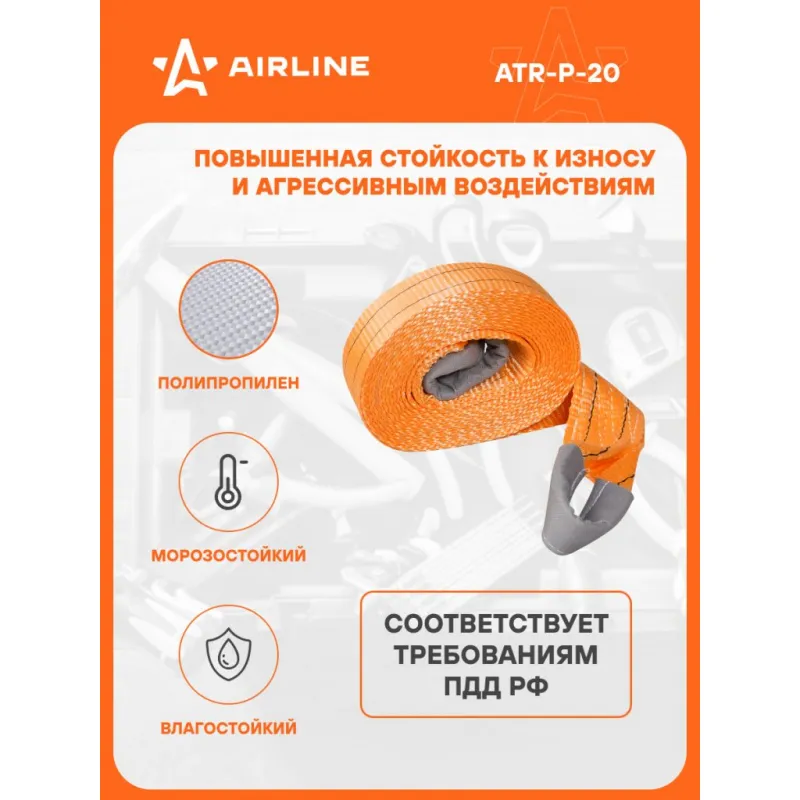 Трос VIP буксировочный усиленный (лента) 20 т, 6 м, без крюков, мешок Описание: Буксировочный трос серии VIP с нагрузкой до 20 т и длиной 6 м - это представитель высококачественных средств для буксировки транспорта. Этот эксклюзивный буксировочный трос линейки VIP изготовлен из особо прочных нитей полиэфирного материала, что приводит к улучшению показателя на разрыв на 50%. Это гарантирует высокий уровень надежности и безопасности при использовании троса. Кроме того, он обладает морозостойкостью и влагостойкостью, что позволяет использовать его в самых разных погодных условиях, обеспечивая стабильную производительность. С VIP тросом AIRLINE длиной 6 м, соответствующим Правилам дорожного движения Российской Федерации, вы можете быть уверены в его надежности и долговечности. Он представляет собой оптимальное решение для тех, кто ценит качество и безопасность при аварийной буксировке и помощи на дороге. Преимущества: -Легко складывается для удобства хранения+ сумка для хранения; -Пружинные фиксаторы для безопасной эксплуатации; -Устойчивость к морозам и влаге; -Простота применения. Из-за невозможности обеспечить абсолютно плавную буксировку, нагрузка на трос может превышать массу автомобиля. РЕКОМЕНДУЕМ использовать трос с разрывной нагрузкой, превышающей массу буксируемого автомобиля : данный трос рекомендован для буксировки транспортных средств со снаряженной массой до 10 тонн. НЕ ИСПОЛЬЗУЙТЕ буксировочный трос для эвакуации застрявших автомобилей. Для этой цели лучше использовать специализированную динамическую (рывковую) стропу. В линейке AIRLINE, вы найдете широкий ассортимент высококачественных автотоваров, автозапчастей, автомобильные наборы, аксессуары для автомобиля на любой вкус, тросы буксировочные/динамические, грузовые стропы. Мы гарантируем качество и надежность наших товаров. Характеристики: Артикул: ATR-P-20 Нагрузка, т: 20 Длина ленты, м: 6 Ширина ленты, мм: 60 Материал ленты: Полиэфир Крепление: Петли Загиб на петлю, см: 30 Длина сшивки, см: 15 Кол-во строчек, шт: 9 Линейная плотность, г/м: 216 Комплектация: Трос буксировочный - 1 шт Сумка для хранения - 1 шт Гарантия: от 1 года.