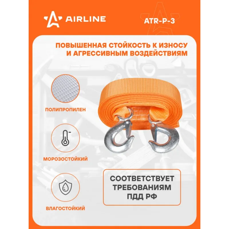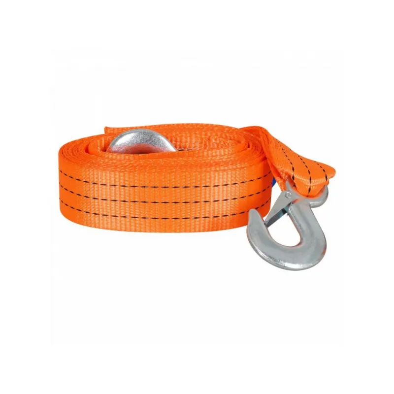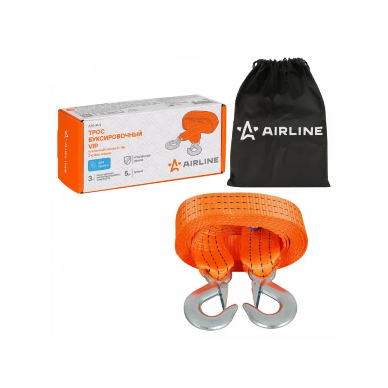 Трос VIP буксировочный усиленный (лента) 3 т, 5 м, 2 крюка, с мешком Описание: Буксировочный трос серии VIP с нагрузкой до 3 т и длиной 5 м - это представитель высококачественных средств для буксировки транспорта. Этот эксклюзивный буксировочный трос линейки VIP изготовлен из особо прочных нитей полиэфирного материала, что приводит к улучшению показателя на разрыв на 50%. Это гарантирует высокий уровень надежности и безопасности при использовании троса. Кроме того, он обладает морозостойкостью и влагостойкостью, что позволяет использовать его в самых разных погодных условиях, обеспечивая стабильную производительность. С VIP тросом AIRLINE длиной 5 м, соответствующим Правилам дорожного движения Российской Федерации, вы можете быть уверены в его надежности и долговечности. Он представляет собой оптимальное решение для тех, кто ценит качество и безопасность при аварийной буксировке и помощи на дороге. Преимущества: -Легко складывается для удобства хранения+ сумка для хранения; -Пружинные фиксаторы для безопасной эксплуатации; -Устойчивость к морозам и влаге; -Прочные стальные крюки буксировочного троса; -Простота применения. Из-за невозможности обеспечить абсолютно плавную буксировку, нагрузка на трос может превышать массу автомобиля. РЕКОМЕНДУЕМ использовать трос с разрывной нагрузкой, превышающей массу буксируемого автомобиля : данный трос рекомендован для буксировки транспортных средств со снаряженной массой до 1,5 тонн. НЕ ИСПОЛЬЗУЙТЕ буксировочный трос для эвакуации застрявших автомобилей. Для этой цели лучше использовать специализированную динамическую (рывковую) стропу. В линейке AIRLINE, вы найдете широкий ассортимент высококачественных автотоваров, автозапчастей, автомобильные наборы, аксессуары для автомобиля на любой вкус, тросы буксировочные/динамические, грузовые стропы. Мы гарантируем качество и надежность наших товаров. Характеристики: Артикул: ATR-P-3 Крепление: Стальные крюки Ширина ленты, мм: 50 Длина ленты, м: 5 Материал ленты: Полиэфир Длина сшивки, см: 10 Кол-во строчек, шт: 9 Линейная плотность, г/м: 68 Нагрузка, т: 3 Загиб на петлю, см: 25 Вес крюка, г: 130 Комплектация: Трос буксировочный с крюками - 1 шт Сумка - 1 шт Коробка пластиковая с бумажной вкладкой - 1 шт Гарантия: от 1 года.