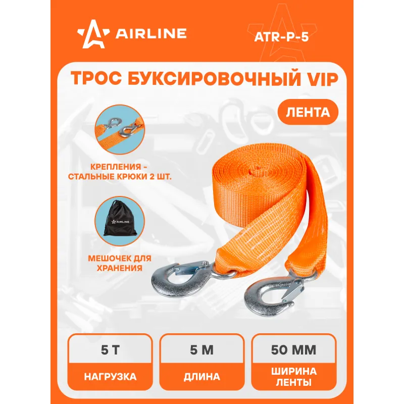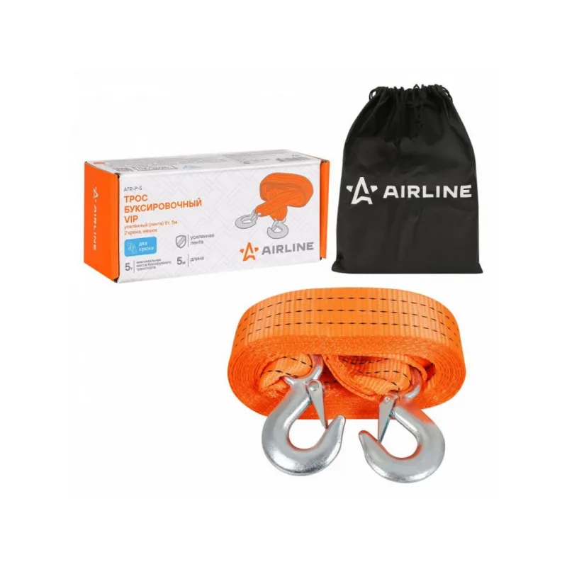 Трос VIP буксировочный усиленный (лента) 5 т, 5 м, 2 крюка, с мешком Описание: Буксировочный трос серии VIP с нагрузкой до 5 т и длиной 5 м - это представитель высококачественных средств для буксировки транспорта. Этот эксклюзивный буксировочный трос линейки VIP изготовлен из особо прочных нитей полиэфирного материала, что приводит к улучшению показателя на разрыв на 50%. Это гарантирует высокий уровень надежности и безопасности при использовании троса. Кроме того, он обладает морозостойкостью и влагостойкостью, что позволяет использовать его в самых разных погодных условиях, обеспечивая стабильную производительность. С VIP тросом AIRLINE длиной 5 м, соответствующим Правилам дорожного движения Российской Федерации, вы можете быть уверены в его надежности и долговечности. Он представляет собой оптимальное решение для тех, кто ценит качество и безопасность при аварийной буксировке и помощи на дороге. Преимущества: -Легко складывается для удобства хранения+ сумка для хранения; -Пружинные фиксаторы для безопасной эксплуатации; -Устойчивость к морозам и влаге; -Прочные стальные крюки буксировочного троса; -Простота применения. Из-за невозможности обеспечить абсолютно плавную буксировку, нагрузка на трос может превышать массу автомобиля. РЕКОМЕНДУЕМ использовать трос с разрывной нагрузкой, превышающей массу буксируемого автомобиля : данный трос рекомендован для буксировки транспортных средств со снаряженной массой до 2,5 тонн. НЕ ИСПОЛЬЗУЙТЕ буксировочный трос для эвакуации застрявших автомобилей. Для этой цели лучше использовать специализированную динамическую (рывковую) стропу. В линейке AIRLINE, вы найдете широкий ассортимент высококачественных автотоваров, автозапчастей, автомобильные наборы, аксессуары для автомобиля на любой вкус, тросы буксировочные/динамические, грузовые стропы. Мы гарантируем качество и надежность наших товаров. Характеристики: Артикул: ATR-P-5 Крепление: Стальные крюки Ширина ленты, мм: 50 Длина ленты, м: 5 Материал ленты: Полиэфир Длина сшивки, см: 10 Кол-во строчек, шт: 9 Линейная плотность, г/м: 68 Нагрузка, т: 5 Загиб на петлю, см: 25 Вес крюка, г: 160 Комплектация: Трос буксировочный с крюками - 1 шт Сумка - 1 шт Коробка пластиковая с бумажной вкладкой - 1 шт Гарантия: от 1 года.