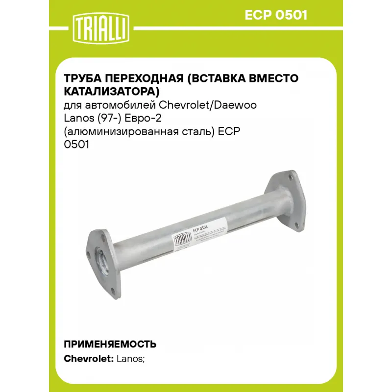 Труба переходная (вставка вместо катализатора) для автомобилей Chevrolet/Daewoo Lanos (97-) Евро-2 (алюминизированная сталь) Характеристики: Артикул: ECP 0501 OEM номера: 96351601 Количество на автомобиль: 1 Гарантийный срок: 2 года/60 тыс. Материал: Алюминизированная сталь Длина изделия (мм): 350 Диаметр трубы (мм): 43 Место установки: посередине Товарная линейка: BLACK Дополнительная информация: Этикетка изделия может отличаться от представленной на фото Сопутствующий товар: Глушители основные/глушители дополнительные (резонаторы): EMM 0506, EAM 0504, EAM 0210 Сопутствующий товар: Трубы газоприемные: ECP 0511; ERP 0504; ERP 0505; ERP 0506; ERP 0509 Подходит для авто: Chevrolet Lanos (97-), Lanos (97-) Для проверки применяемости отправьте VIN автомобиля через вкладку "Есть вопросы о товаре?" Комплектация: Труба приемная - 1 шт Гарантия: от 1 года.