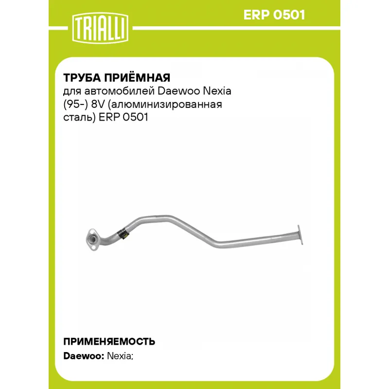 Труба приёмная для автомобилей Daewoo Nexia (95-) 8V (алюминизированная сталь) Характеристики: Артикул: ERP 0501 OEM номера: 90352728, 90352798 Количество на автомобиль: 1 Гарантийный срок: 2 года/60 тыс. Материал: Алюминизированная сталь Длина изделия (мм): 1140 Диаметр трубы (мм): 43 Место установки: спереди Товарная линейка: BLACK Дополнительная информация: Этикетка изделия может отличаться от представленной на фото Сопутствующий товар: Глушители основные/глушители дополнительные (резонаторы): EAM 0503, EMM 0501 Сопутствующий товар: Трубы газоприемные: ECP 0502 Подходит для авто: Daewoo Nexia (94-) Для проверки применяемости отправьте VIN автомобиля через вкладку "Есть вопросы о товаре?" Комплектация: Труба приемная - 1 шт Гарантия: от 1 года.