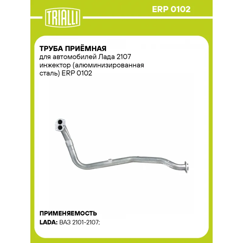 Труба приёмная для автомобилей Лада 2107 инжектор (алюминизированная сталь) Характеристики: Артикул: ERP 0102 OEM номера: 21073-1203010-10 Количество на автомобиль: 1 Гарантийный срок: 2 года/60 тыс. Материал: Алюминизированная сталь Длина изделия (мм): 1074 Диаметр трубы (мм): 51 Место установки: спереди Товарная линейка: BLACK Дополнительная информация: Этикетка изделия может отличаться от представленной на фото Сопутствующий товар: Глушители основные/глушители дополнительные (резонаторы): EAM 0106s, EAM 0125, EAM 0125s, EAM 0106 Комплектация: Труба приемная - 1 шт Гарантия: от 1 года.