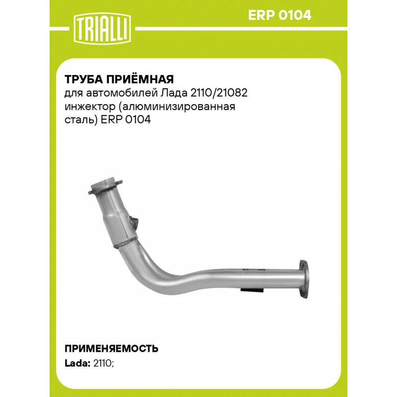 Труба приёмная для автомобилей Лада 2110/21082 инжектор (алюминизированная сталь) Характеристики: Артикул: ERP 0104 OEM номера: 21102-1203010, 21102-1203010-01, 21082-1203010 Количество на автомобиль: 1 Гарантийный срок: 2 года/60 тыс. Материал: Алюминизированная сталь Длина изделия (мм): 430 Диаметр трубы (мм): 51 Место установки: спереди Товарная линейка: BLACK Дополнительная информация: Этикетка изделия может отличаться от представленной на фото Сопутствующий товар: Глушители основные/глушители дополнительные (резонаторы): EMM 0108, EAM 0110, EAM 0113, EAM 0113s, EAM 0126s, EAM 0126 Сопутствующий товар: Трубы газоприемные: ECP 0103; ECP 0109; ECP 0113 Подходит для авто: ВАЗ 2110 Для проверки применяемости отправьте VIN автомобиля через вкладку "Есть вопросы о товаре?" Комплектация: Труба приемная - 1 шт Гарантия: от 1 года.