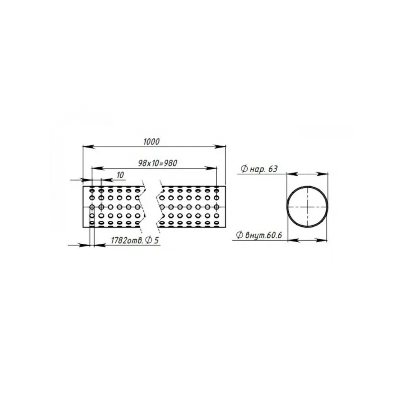 Труба прямая перфорированная 63х1000 (d=63х1.2, L=1000мм) (алюминизированная сталь) Характеристики: Артикул: EMPD 631000 OEM номера: 5320-1203011, 5320-1203010, 5320-1201010, 5320-1203016, 5320-1203012, 5320-1203214, 5320-1203051, 4310-1201010, 5511-1203048 Количество на автомобиль: 1 Гарантийный срок: 2 года/60 тыс. Длина изделия, мм: 1000 Материал: 08ПС ОЦ Диаметр, мм: 63 Толщина стенок: 1.2 Товарная линейка: BLACK Дополнительная информация: Этикетка изделия может отличаться от представленной на фото Комплектация: Труба перфорированная прямая - 1 шт Гарантия: от 1 года.