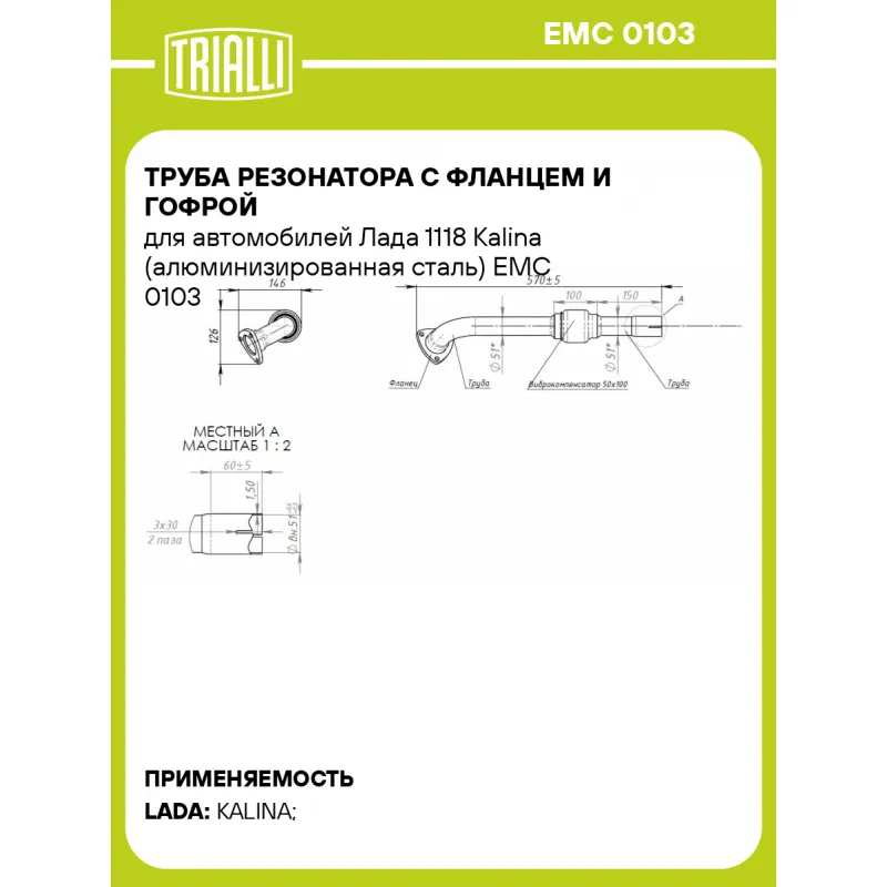 Труба резонатора с фланцем и гофрой для автомобилей Лада 1118 Kalina (алюминизированная сталь) Характеристики: Артикул: EMC 0103 OEM номера: 1118-1200020, 11180120002081, 11180120002000 Материал: Алюминизированная сталь Диаметр, мм: 51 Гарантийный срок: 2 года/60 тыс. Толщина стенок: 1,2 Длина изделия, мм: 570 Количество на автомобиль: 1 Товарная линейка: BLACK Дополнительная информация: Этикетка изделия может отличаться от представленной на фото Комплектация: Фланец с трубой - 1 шт Виброкомпенсатор выхлопной трубы - 1 шт Гарантия: от 1 года.