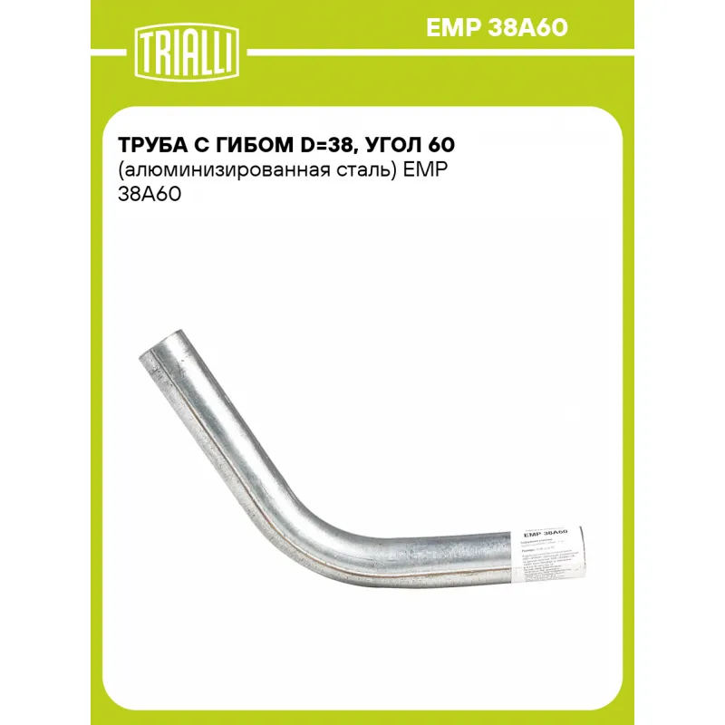Труба с гибом d=38, угол 60 (алюминизированная сталь) Характеристики: Артикул: EMP 38A60 OEM номера: 285102BPF2, 286101G300, 287001G300, 287301G400, 286101W250, 286101W260, 286501W250, 287101W250, 287301G450, 8200916974, 2851026430 Количество на автомобиль: 1 Гарантийный срок: 2 года/60 тыс. Длина изделия, мм: 400 Материал: 08ПС ОЦ Диаметр, мм: 38 Угол: 60 Толщина стенок: 1.5 Товарная линейка: BLACK Дополнительная информация: Этикетка изделия может отличаться от представленной на фото Комплектация: Труба с гибом - 1 шт Гарантия: от 1 года.
