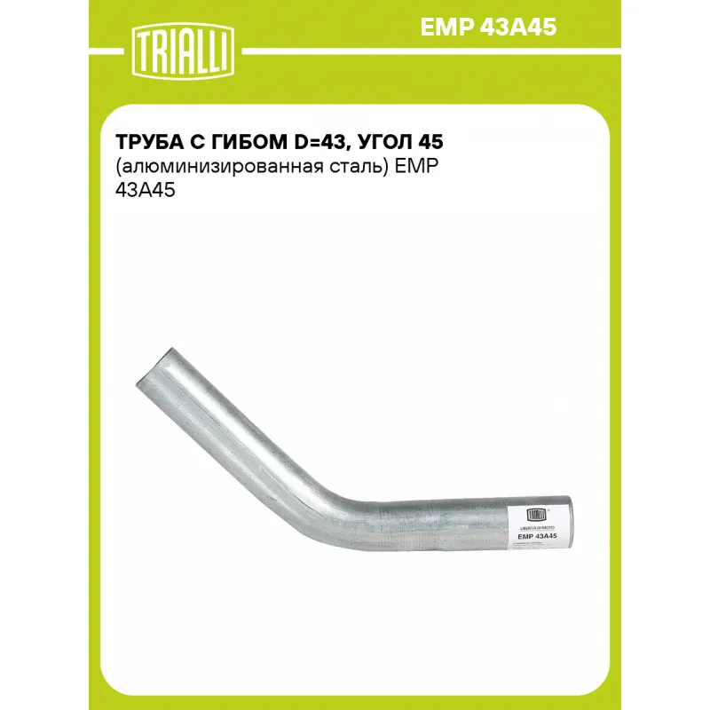 Труба с гибом d=43, угол 45 (алюминизированная сталь) Характеристики: Артикул: EMP 43A45 OEM номера: 285102BPF2, 286101G300, 287001G300, 287301G400, 286101W250, 286101W260, 286501W250, 287101W250, 287301G450, 8200916974, 2851026430 Количество на автомобиль: 1 Гарантийный срок: 2 года/60 тыс. Длина изделия, мм: 400 Материал: 08ПС ОЦ Диаметр, мм: 43 Угол: 45 Толщина стенок: 1.5 Товарная линейка: BLACK Дополнительная информация: Этикетка изделия может отличаться от представленной на фото Комплектация: Труба с гибом - 1 шт Гарантия: от 1 года.
