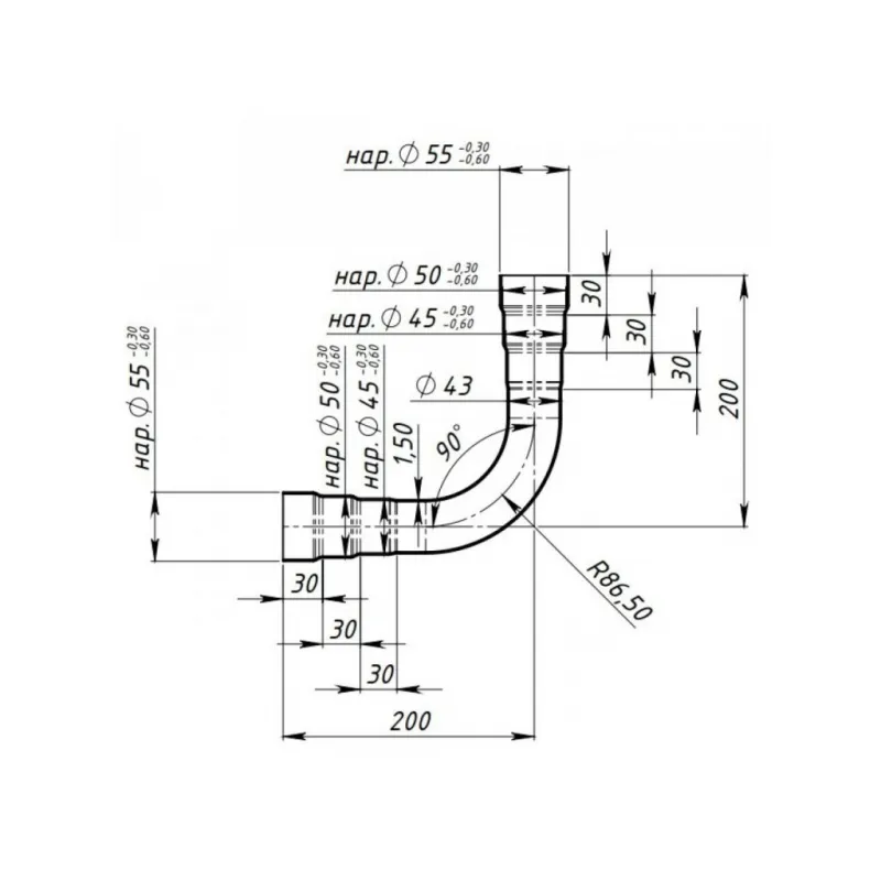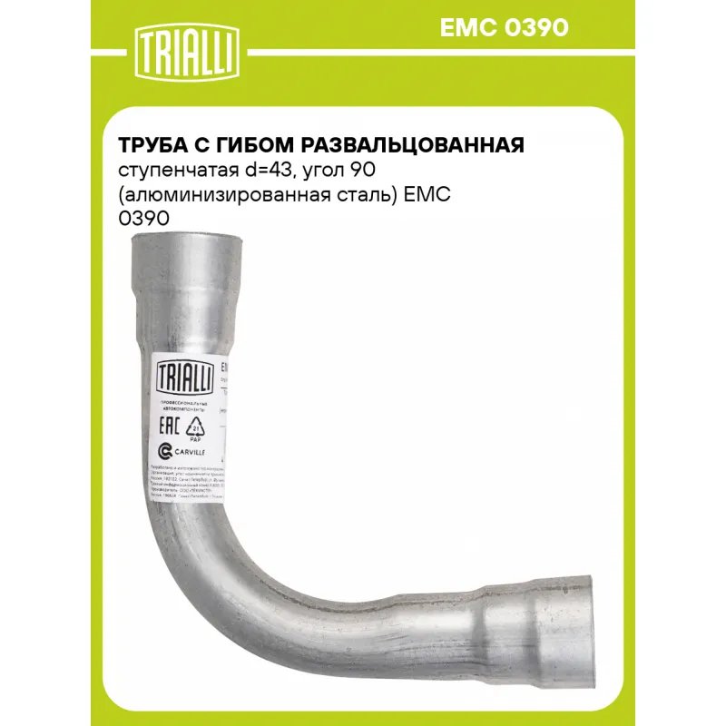 Труба с гибом развальцованная ступенчатая d=43, угол 90 (алюминизированная сталь) Характеристики: Артикул: EMC 0390 OEM номера: 285102BPF2, 286101G300, 287001G300 Количество на автомобиль: 1 Гарантийный срок: 2 года/60 тыс. Длина изделия, мм: 400 Материал: 08ПС ОЦ Диаметр, мм: 43 Угол: 90 Толщина стенок: 1.5 Товарная линейка: BL... Читать полностью →
