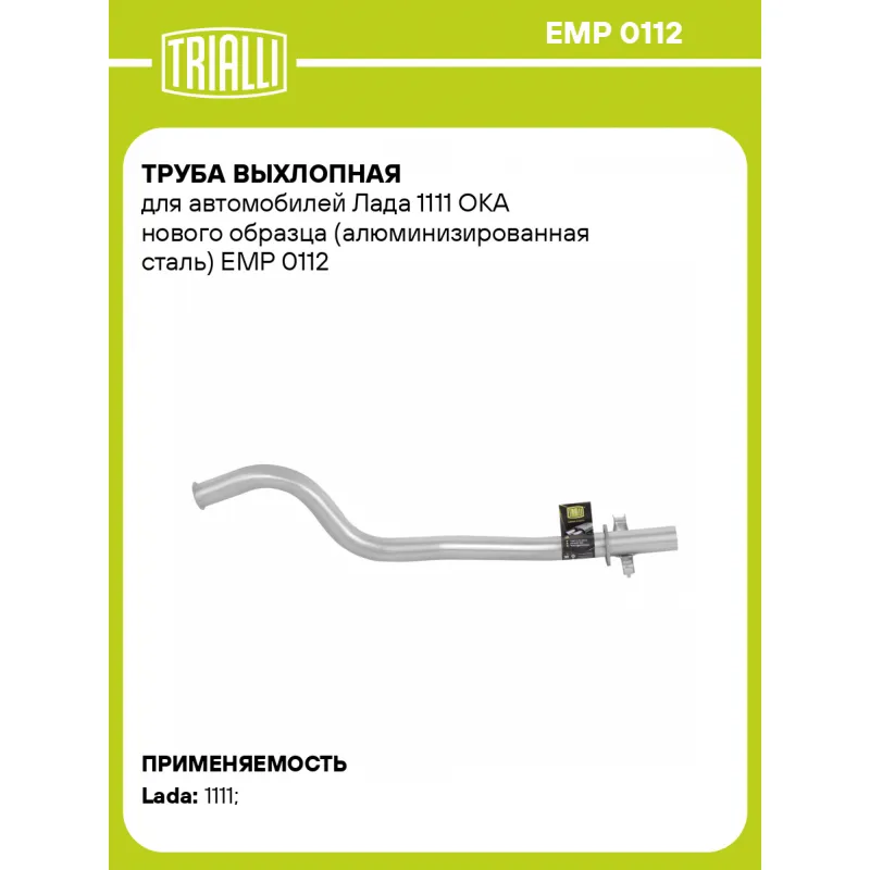 Труба выхлопная для автомобилей Лада 1111 ОКА нового образца (алюминизированная сталь) Характеристики: Артикул: EMP 0112 OEM номера: 1111-1203154-10 Количество на автомобиль: 1 Гарантийный срок: 2 года/60 тыс. Материал: Алюминизированная сталь Длина изделия (мм): 690 Диаметр трубы (мм): 38 Место установки: сзади Товарная линейка: BLACK Дополнительная информация: Этикетка изделия может отличаться от представленной на фото Сопутствующий товар: Глушители основные/глушители дополнительные (резонаторы): EMM 0102 Подходит для авто: ВАЗ 1111 (Ока) Для проверки применяемости отправьте VIN автомобиля через вкладку "Есть вопросы о товаре?" Комплектация: Труба выхлопная - 1 шт Гарантия: от 1 года.