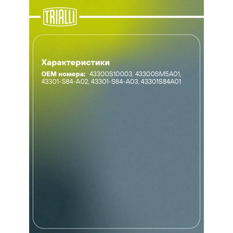 Цилиндр тормозной для автомобилей Honda CR-V (95-) / HR-V (98-) правый d=20.6мм Характеристики: Артикул: CF 0557 OEM номера: 43300S10003, 43300SM5A01, 43301-S84-A02, 43301-S84-A03, 43301S84A01 Парный товар: CF 0551 Количество на автомобиль: 1 Диаметр, мм: 20.6 Размер резьбы: M10x1 Гарантийный срок: 2 года / 60 000 км Материал: А... Читать полностью →