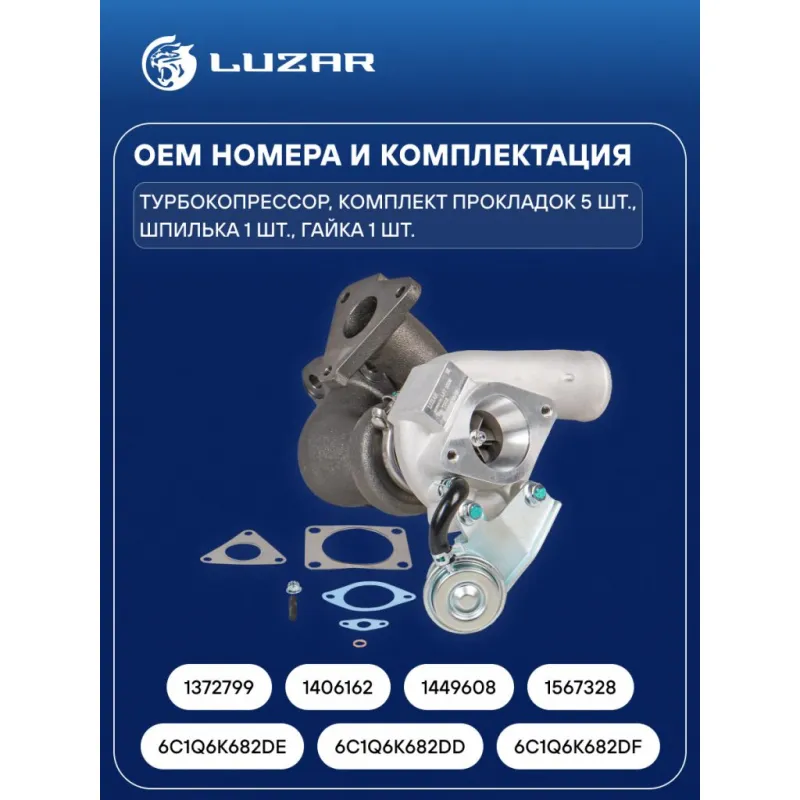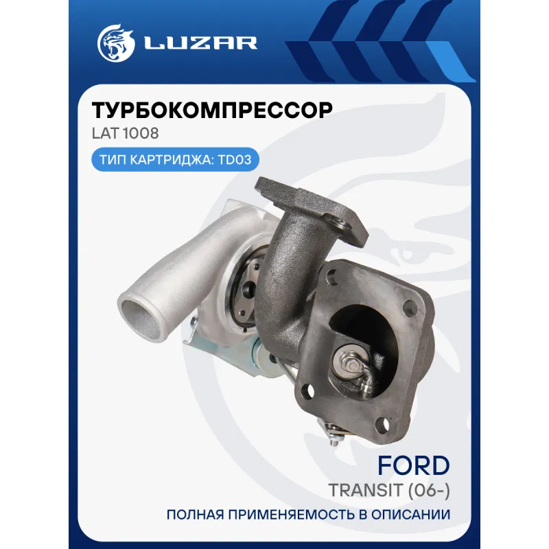 Турбокомпрессор для а/м Ford Transit (06-) 2.4D (тип TD03) Характеристики: Артикул: LAT 1008 OEM номера: 6C1Q6K682DE, 6C1Q6K682DD, 6C1Q6K682DF, 1372799, 1406162, 1449608, 1567328 Количество на автомобиль: 1 Картридж: LAT 5006 Сопутствующий товар: Актуатор: LTC 1008 Сопутствующий товар: Набор монтажный: LTC 10081 Применяемость: JXFA,JXFC 115л.с/ PHFA, PHFC 100л.с. Подходит для авто: Land Rover Defender (06-) Ford Transit VII (06-) Для проверки применяемости отправьте VIN автомобиля через вкладку "Есть вопросы о товаре?" Комплектация: Турбокомпрессор - 1 шт Комплект прокладок - 5 шт Шпилька - 1 шт Гайка - 1 шт Паспорт изделия - 1 шт Гарантия: от 1 года.