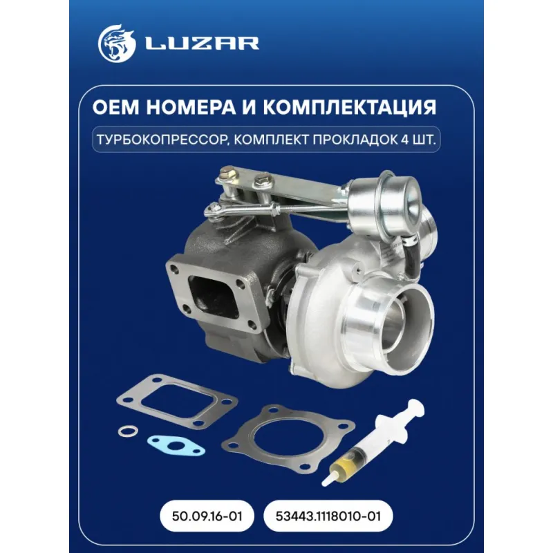 Турбокомпрессор для а/м ГАЗон Next с дв. ЯМЗ-53443-20 (E-5) Характеристики: Артикул: LAT 0341 OEM номера: 50.09.16-01, 53443.1118010-01 Количество на автомобиль: 1 Сопутствующий товар: Актуатор: LTC 0341 Сопутствующий товар: Набор монтажный: LTC 03411 Применяемость: ЯМЗ-53443-20 Подходит для авто: ГАЗ GAZon-Next (14-) Для проверки применяемости отправьте VIN автомобиля через вкладку "Есть вопросы о товаре?" Комплектация: Турбокомпрессор - 1 шт Комплект прокладок - 4 шт Паспорт изделия - 1 шт Гарантия: от 1 года.