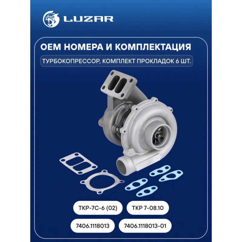 Турбокомпрессор для а/м КАМАЗ 740.30/31/60/61/62/63 E-2/3 левый (4 шп.) (тип S2B) Характеристики: Артикул: LAT 0736 OEM номера: 7406.1118013, 7406.1118013-01, ТКР-7С-6 (02), ТКР 7-08.10 Количество на автомобиль: 1 Тип картриджа: S2B Картридж: LAT 5001 Подходит для авто: КамаАЗ 6520, 65222, 6460, 5460, 65115 Для проверки применяемости отправьте VIN автомобиля через вкладку "Есть вопросы о товаре?" Комплектация: Турбокомпрессор Комплект прокладок - 6 шт Паспорт изделия Гарантия: от 1 года.