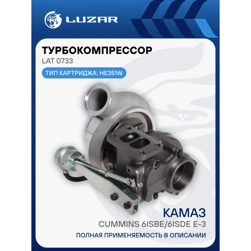 Турбокомпрессор для а/м КАМАЗ Cummins 6ISBe/6ISDe E-3 (тип HE351W) Характеристики: Артикул: LAT 0733 OEM номера: 4955908, 4043980, 4033409, 4043982, PP99047, 2837188 Количество на автомобиль: 1 Тип картриджа: HE351W Сопутствующий товар: Картридж: LAT 5002 Сопутствующий товар: Актуатор: LTC 0733 Сопутствующий товар: Набор монтажный: LTC 07331 Подходит для авто: КамаАЗ 65115, 4308, 43253, 5308, 43255, 65117, 6540, 65116 Для проверки применяемости отправьте VIN автомобиля через вкладку "Есть вопросы о товаре?" Комплектация: Турбокомпрессор - 1 шт Комплект прокладок - 3 шт Паспорт изделия - 1 шт Гарантия: от 1 года.