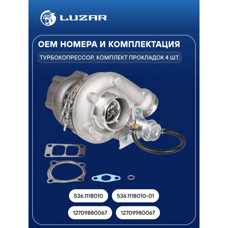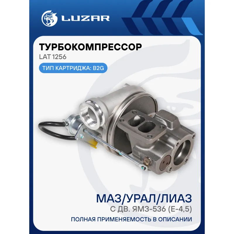 Турбокомпрессор для а/м МАЗ/УРАЛ/ЛиАЗ с дв. ЯМЗ-536 (Е-4,5) (тип B2G) Характеристики: Артикул: LAT 1256 OEM номера: 536.1118010, 536.1118010-01, 12709880067, 12709980067 Количество на автомобиль: 1 Тип картриджа: B2G Применение: ЯМЗ-5361,-5362,-5363, -5364, -5365, -5366 (Евро 4, 5) Сопутствующий товар: Актуатор: LTC 1256 Сопутствующий товар: Набор монтажный: LTC 12561 Подходит для авто: МАЗ 5340, 5440, 5550, 6312, 6501 Ural Ural-Next, 4320-78, 5557, 4420 ЛиАЗ 6212, 6213, 5256 Для проверки применяемости отправьте VIN автомобиля через вкладку "Есть вопросы о товаре?" Комплектация: Турбокомпрессор - 1 шт Комплект прокладок - 4 шт Паспорт изделия - 1 шт Гарантия: от 1 года.