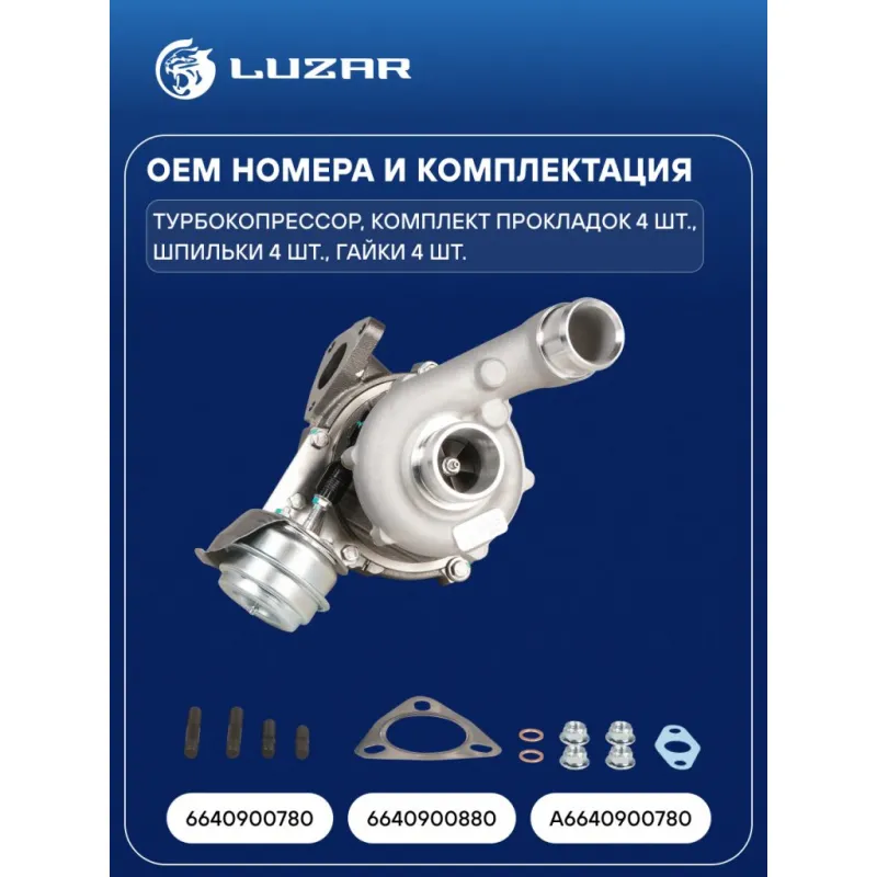 Турбокомпрессор для а/м SsangYong Kyron/Actyon (05-) 2.0D [D20DT] (тип GTB1549V) Характеристики: Артикул: LAT 1750 OEM номера: 6640900780, 6640900880, A6640900780 Количество на автомобиль: 1 Применяемость: D20DT Тип картриджа: GTB1549V Сопутствующий товар: Актуатор: LTC 1750 Сопутствующий товар: Набор монтажный: LTC 17501 Подходит для авто: SsangYong Actyon Sport (05-), Actyon (05-), Kyron (05-) Для проверки применяемости отправьте VIN автомобиля через вкладку "Есть вопросы о товаре?" Комплектация: Турбокомпрессор - 1 шт Комплект прокладок - 4 шт Шпильки - 4 шт Гайки - 4 шт Паспорт изделия - 1 шт Гарантия: от 1 года.