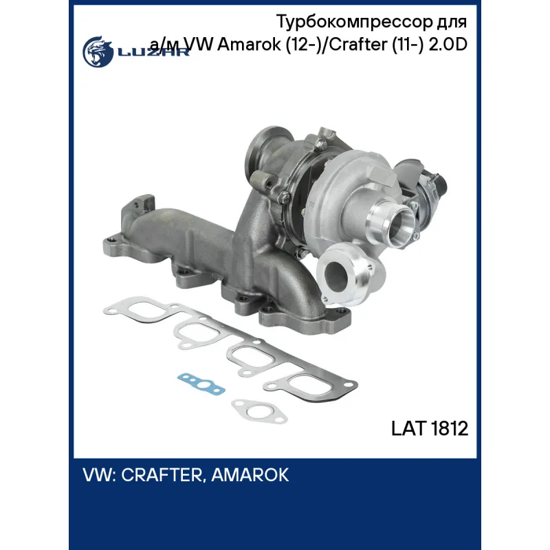 Турбокомпрессор для а/м VW Amarok (12-)/Crafter (11-) 2.0D (тип GTC1446VMZ) Характеристики: Артикул: LAT 1812 OEM номера: 03L253014A, 03L253014C, 03L253014AX Количество на автомобиль: 1 Тип картриджа: GTC1446VMZ Применяемость: CNFB, CDBA, CNFA, CKTC, CSLB, CKTB, CSLA, CSLC Комплектация: Турбокомпрессор Комплект прокладок - 3 ... Читать полностью →
