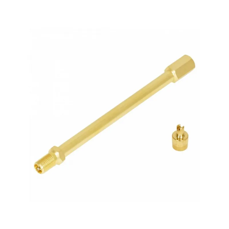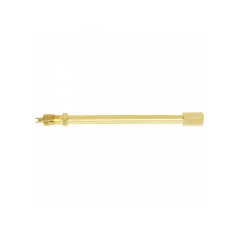 Удлинитель вентиля, 110 мм, латунь Описание: Удлинитель вентиля предназначен для подкачки внутренного колеса на спаренных (сдвоенных) колесах грузовиков, самосвалов, тягачей и другой техники, имеющей по 4 колеса на заднем мосту. Удлинитель накручивается на вентиль и остается на нем на постоянной основе. Через удлинитель можно без проблем подкачать внутренне колесо или проверить давление воздуха в нем. Преимущества: - Прочный корпус из латуни. Устойчив к износу, коррозии и механическим повреждениям. Служит в несколько раз дольше пластиковых и резиновых аналогов. - Удобство в любой ситуации. Лёгкий доступ к вентилю даже в спаренных колёсах, глубокой посадке диска или при установленных декоративных колпаках. - Надёжное соединение без утечек. Герметичное крепление гарантирует точность показаний манометра и безопасную подкачку. - Работа в любых условиях. Выдерживает экстремальные температуры, агрессивные химические реагенты, вибрации и высокое давление. - Универсальная совместимость. Подходит к большинству стандартных автомобильных вентилей Характеристики: Артикул: ATRV040 Рабочее давление, Bar: 14 Диаметр отверстия в диске, мм: 11,3 Материал: Латунь Общая длина, мм: 136 Температура эксплуатации, °С, min: -40 Температура эксплуатации, °С, max: 100 Комплектация: Удлинитель вентиля - 1 шт Гарантия: от 1 года.