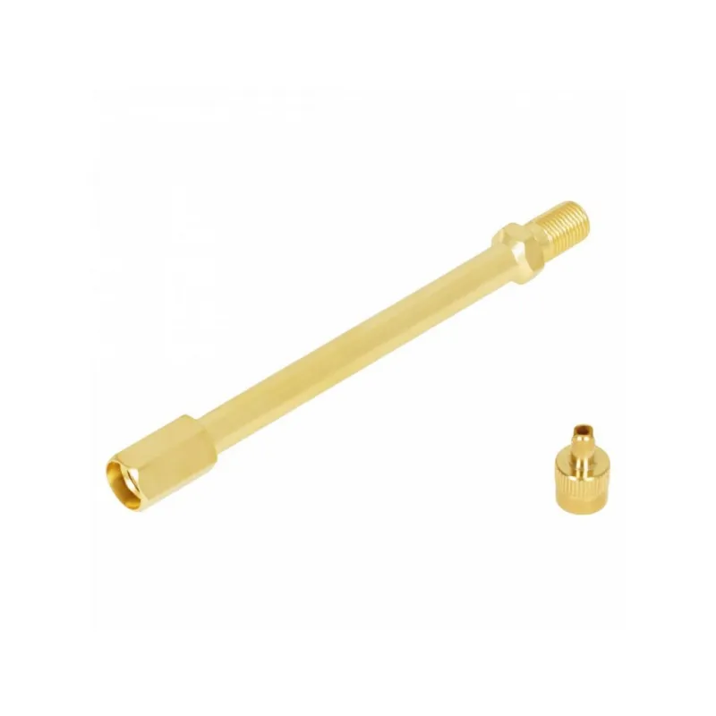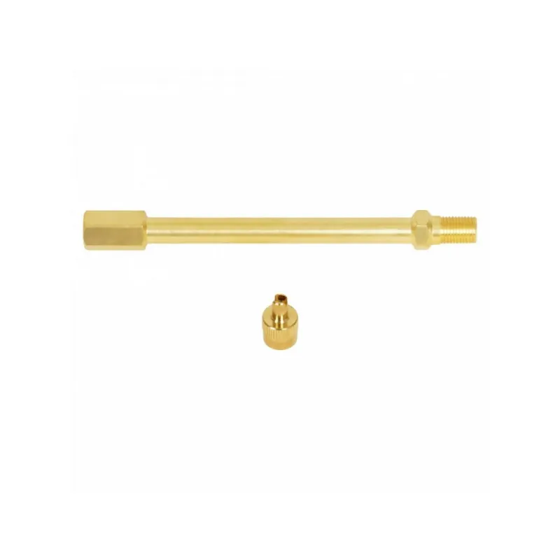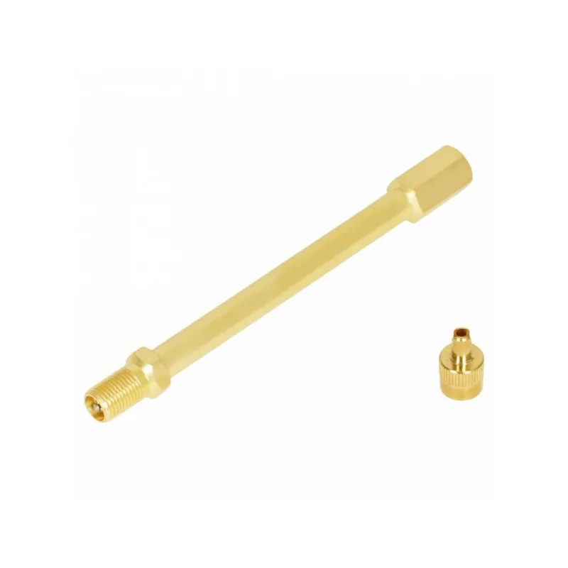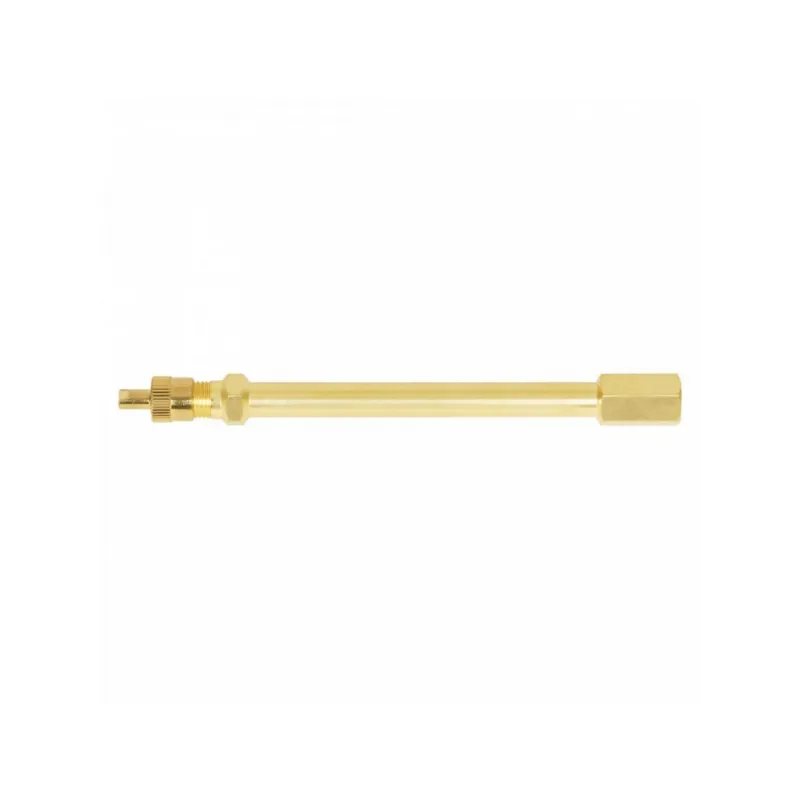 Удлинитель вентиля, 90 мм, латунь Описание: Удлинитель вентиля предназначен для подкачки внутренного колеса на спаренных (сдвоенных) колесах грузовиков, самосвалов, тягачей и другой техники, имеющей по 4 колеса на заднем мосту. Удлинитель накручивается на вентиль и остается на нем на постоянной основе. Через удлинитель можно без проблем подкачать внутренне колесо или проверить давление воздуха в нем. Преимущества: - Прочный корпус из латуни. Устойчив к износу, коррозии и механическим повреждениям. Служит в несколько раз дольше пластиковых и резиновых аналогов. - Удобство в любой ситуации. Лёгкий доступ к вентилю даже в спаренных колёсах, глубокой посадке диска или при установленных декоративных колпаках. - Надёжное соединение без утечек. Герметичное крепление гарантирует точность показаний манометра и безопасную подкачку. - Работа в любых условиях. Выдерживает экстремальные температуры, агрессивные химические реагенты, вибрации и высокое давление. - Универсальная совместимость. Подходит к большинству стандартных автомобильных вентилей Характеристики: Артикул: ATRV038 Рабочее давление, Bar: 14 Диаметр отверстия в диске, мм: 11,3 Материал: Латунь Общая длина, мм: 116 Температура эксплуатации, °С, min: -40 Температура эксплуатации, °С, max: 100 Комплектация: Удлинитель вентиля - 1 шт Гарантия: от 1 года.