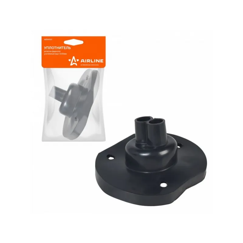 Уплотнитель розетки фаркопа усеч. круг 2х10мм Описание: Уплотнитель розетки фаркопа AIRLINE AEBA003. Уплотнитель выполнен из резины. Предназначен для розеток с усечёнными боками. Позволяет подвести к розетке два кабеля. Особенности: * Диаметр кабеля 2х10 мм; * Надежный контакт; * Качественный механизм; Для самостоятельного подключения автоприцепа к автомобилю необходимо использовать разъем розетки прицепа (вилка-розетка). Соединение осуществляется путем соединения розетки, установленной на фаркопе, с соответствующим разъемом, подключенным к проводке прицепа. Товар официального производителя AIRLINE. Характеристики: Артикул: AEBA003 Диаметр кабеля, мм: 2x10 Комплектация: Уплотнитель - 1 шт Гарантия: от 1 года.