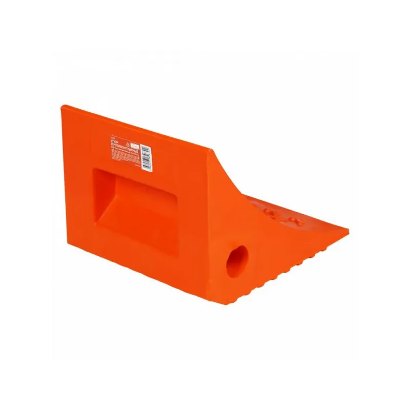 Упор (башмак) противооткатный, полиуретановый 20х18х15см Описание: Противооткатный упор способен зафиксировать транспортное средство во время проведения ремонтных работ. Упор изготовлен из высокопрочного пластика и полиуреретана оранжевого цвета. Изделие имеет ребристую поверхность и компактные размеры 20х18х15см. Характеристики: Артикул: AJU07 Размер (длина), мм: 200 Размер (ширина), мм: 180 Размеры (высота), мм: 150 Комплектация: Упор противооткатный с наклейкой - 1 шт Гарантия: от 1 года.