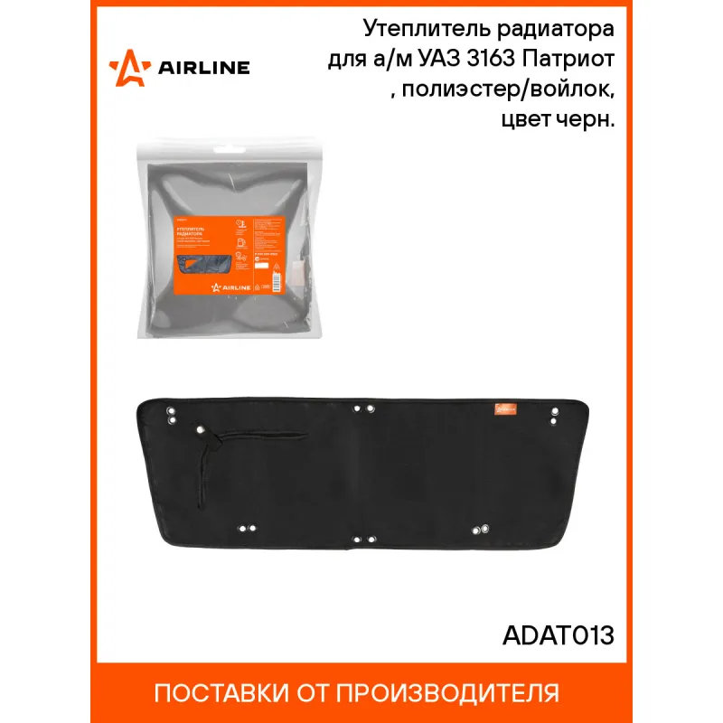 Утеплитель радиатора для а/м УАЗ 3163 Патриот (до 2014), полиэстер/войлок, цвет черн. Описание: Утеплитель решётки радиатора – это эффективное решение для защиты вашего автомобиля от холода. Созданный из высококачественных материалов, таких как полиэстер 600D и войлок, этот утеплитель обеспечивает надежную изоляцию, предотвращая потерю тепла и помогая поддерживать оптимальную температуру в салоне вашего автомобиля. Благодаря использованию войлока в качестве второго слоя, утеплитель обладает отличными теплоизоляционными свойствами, обеспечивая комфортное путешествие даже в самые холодные дни. Легко устанавливаемый и подходящий для большинства моделей автомобилей, этот утеплитель радиатора станет надежным помощником в борьбе с холодом зимой. Система крепления: нейлоновые хомуты-стяжки, металические люверсы и кнопки, завязки. Характеристики: Артикул: ADAT013 OEM номера: 3163-3914010 Ширина, мм: 280 Длина, мм: 830/740 Плотность материала, г/м2: 500 Рабочий диапазон температур, °С: -50/+90 Цвет: черный Комплектация: Утеплитель - 1 шт Набор хомутов 10 шт. - 1 уп Гарантия: от 1 года.