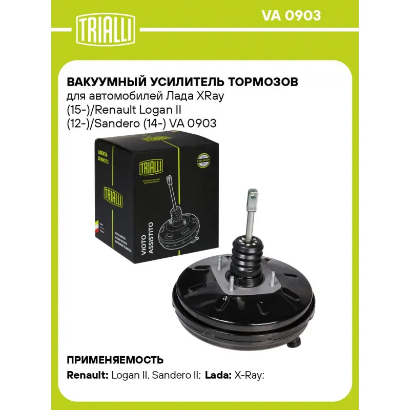 Вакуумный усилитель тормозов для автомобилей Лада XRay (15-)/Renault Logan II (12-)/Sandero (14-) Характеристики: Артикул: VA 0903 OEM номера: 472102876R, 472107479R, 472103385R, 2180-3510010-10 Количество на автомобиль: 1 Товарная линейка: BLACK Сопутствующий товар: Цилиндры главные тормозные: CF 132 Гарантийный срок: 2 года / 60 000 км Подходит для авто: Renault Logan II (12-), Sandero II (14-) ВАЗ X-Ray (15-) Для проверки применяемости отправьте VIN автомобиля через вкладку "Есть вопросы о товаре?" Комплектация: Вакуумный усилитель тормоза - 1 шт Гарантия: от 1 года.