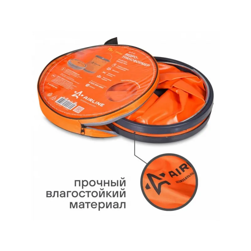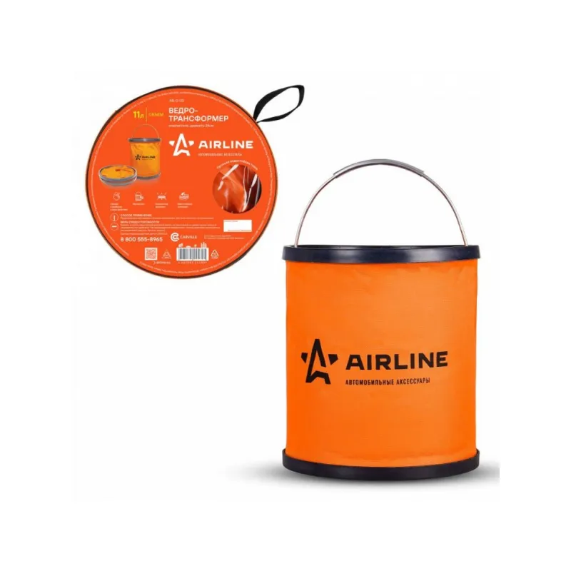 Ведро-трансформер компактное оранжевое 11л Описание: Ведро-трансформер от AIRLINE – это фирменная разработка компании-производителя. Ведро изготовлено из материала 100% полиэстер, который не пропускает жидкость. К преимуществам изделия относится легкая масса, а также складной механизм. Таким образом, ведро легко хранить в багажнике автомобиля. Благодаря складной конструкции ведро занимает мало места при хранении и транспортировке. Ведро удобно хранить в автомобиле в сложенном виде в сумке с молнией, которая идет в комплекте. Материалы не токсичны. Ведро подходит для хозяйственного и бытового использования. Вы найдете ему применение дома, на даче, в огороде и в саду, при выезде на природу или на рыбалку, для мытья салона автомобиля, для любых хозяйственных целей. Складное ведро - это нужный аксессуар в ваш автомобиль, подарите его себе, автомобилисту, жене, мужу, дедушке, дяде, отцу. В любом случае это будет полезный подарок для каждого. Характеристики: Артикул: AB-O-02 Объем, л: 11 Цвет: оранжевый Диаметр, см: 24 Комплектация: Ведро-трансформер компактное оранжевое (11л) в сумке с молнией - 1 шт Гарантия: от 1 года.