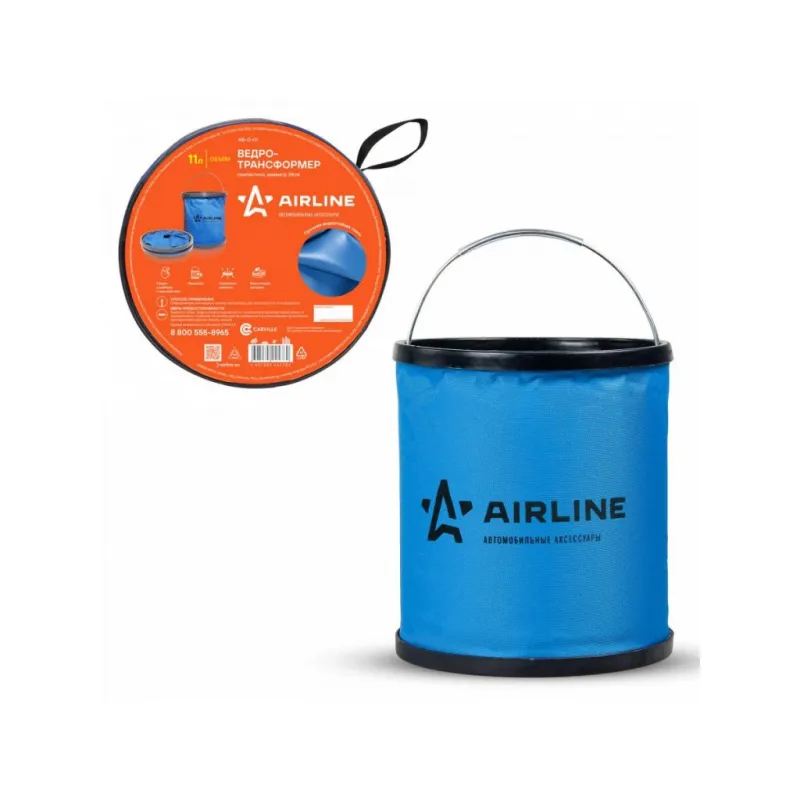 Ведро-трансформер компактное синее 11л Описание: Ведро-трансформер от AIRLINE – это фирменная разработка компании-производителя. Ведро изготовлено из материала 100% полиэстер, который не пропускает жидкость. К преимуществам изделия относится легкая масса, а также складной механизм. Таким образом, ведро легко хранить в багажнике автомобиля. Благодаря складной конструкции ведро занимает мало места при хранении и транспортировке. Ведро удобно хранить в автомобиле в сложенном виде в сумке с молнией, которая идет в комплекте. Материалы не токсичны. Ведро подходит для хозяйственного и бытового использования. Вы найдете ему применение дома, на даче, в огороде и в саду, при выезде на природу или на рыбалку, для мытья салона автомобиля, для любых хозяйственных целей. Складное ведро - это нужный аксессуар в ваш автомобиль, подарите его себе, автомобилисту, жене, мужу, дедушке, дяде, отцу. В любом случае это будет полезный подарок для каждого. Характеристики: Артикул: AB-O-01 Объем, л: 11 Цвет: синий Диаметр, см: 24 Комплектация: Ведро-трансформер компактное синее (11л) в сумке с молнией - 1 шт Гарантия: от 1 года.