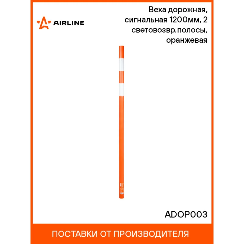Веха дорожная, сигнальная 1200мм, 2 световозвр.полосы, оранжевая Описание: Оградительная вехи (визирная вешка) — это удобное мобильное дорожное ограждение, которое может использоваться при дорожных работах, при обозначении мест ремонта, учебной езде, а также при проведении массовых или спортивных мероприятий. Изделия обладают яркой оранжевой окраской, и оснащается двумя широкими белыми световозвращателями, что делает их заметными как в дневное, так и в ночное время. Вехи часто используются совместно с оградительной сеткой, светодиодными гирляндами ФС12 или фонарями ФC4, а также оградительной лентой. Данный вид ограждений также может играть роль в создании декоративной подсветки. Устанавливаются в верхнее отверстия конусов или втыкаются в землю при помощи специального стержня. Параметры: 1. Материал: морозостойкий полиэтилен 2. Типовые размеры: ф20мм х 1500мм, ф40мм х 1200мм, ф40мм х 1800мм, ф63мм х 1200мм 3. Цвет: оранжевый 4. Световозвращатели: 2 белых полосы шириной 100мм Характеристики: Артикул: ADOP003 Цвет: Оранжевый Материал: Мягкий пластик Высота, мм: 1200 Форма основания: круг Размер основания, мм: 40 Высота полосы, мм: 50 Мин. температура эксплуатации, °С: -30 Макс. температура эксплуатации, °С: 40 Кол-во полос, шт: 2 Диаметр столбика, мм: 40 Комплектация: Веха с наклейкой - 1 шт Гарантия: от 1 года.