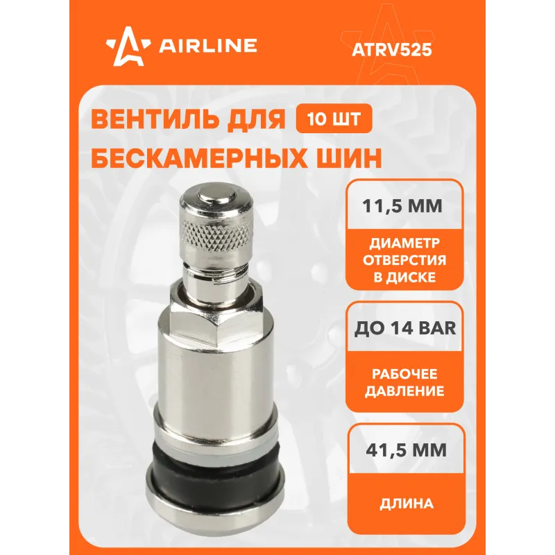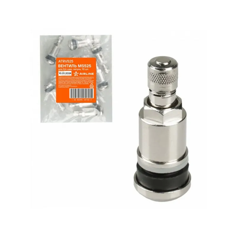Вентиль для б/к шин MS525, латунь Описание: Колесный шинный вентиль для бескамерных шин ATRV525 от бренда AIRLINE представляет собой комплект 10 шт обратный клапан и является главным расходным материалом для шиномонтажа, при ремонте и межсезонной смене шин легковых и грузовых автомобилей. Ниппель для бескамерных шин предназначен для нагнетания и удержания воздуха внутри шины. Корпус, золотник и колпачок выполнены из латуни, прокладка - из резины. Особенности: Диаметр отверстия в диске, 11,5 мм; Рабочее давление, 14 Bar; Длина вентиля, 41,5 мм; Обеспечивает высокую герметичность, прочность; Изготовлены из высококачественных материалов - латунь, резина; Устойчивы к износу и коррозии; Удобен в использовании для профессионалов и любителей; Помимо автомобилей вентиля подходят для мотоциклов, квардроциклов, прицепов, снегоуборочной техники. Товар официального производителя AIRLINE. Характеристики: Артикул: ATRV525 Диаметр отверстия в диске, мм: 11,5 Рабочее давление, Bar: 14 Длина, мм: 41,5 Комплектация: Вентиль - 1 шт Гарантия: от 1 года.