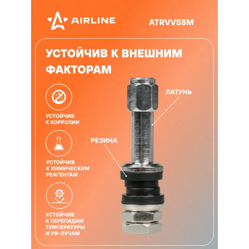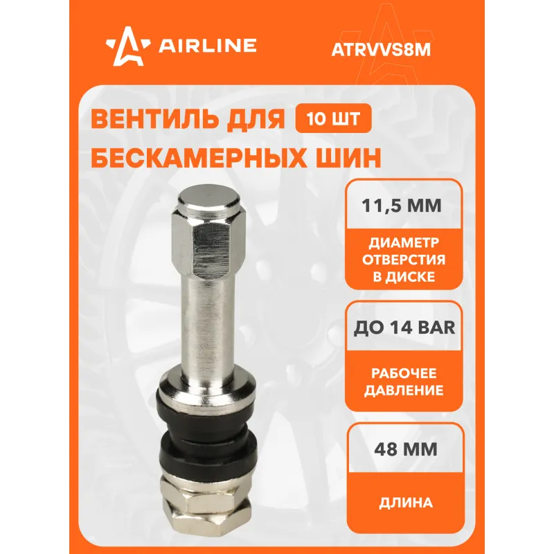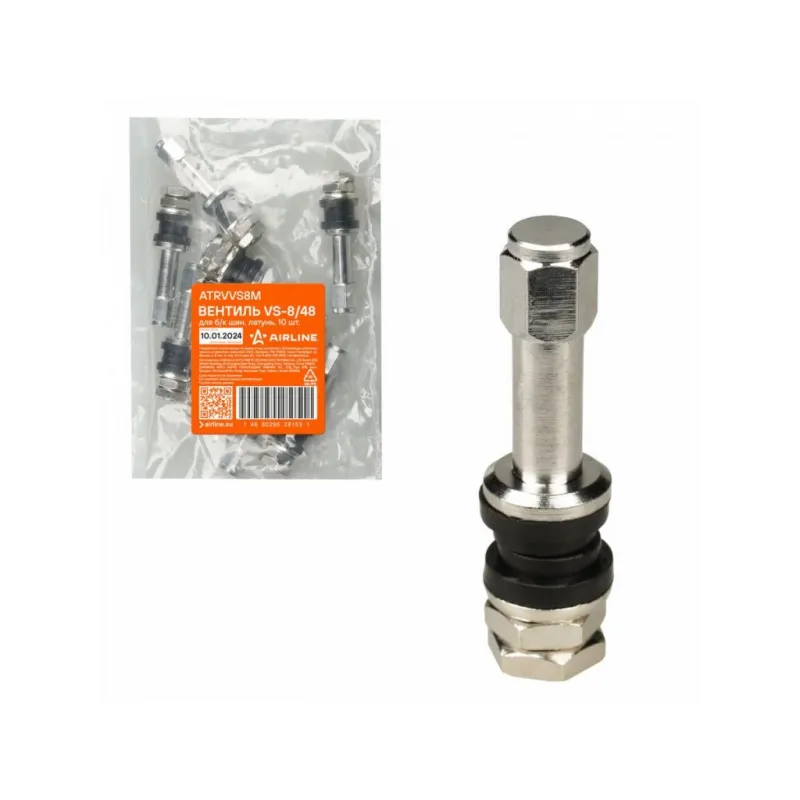 Вентиль для б/к шин VS-8/48, латунь Описание: Колесный шинный вентиль для бескамерных шин ATRVVS8M от бренда AIRLINE представляет собой комплект 10 шт обратный клапан и является главным расходным материалом для шиномонтажа, при ремонте и межсезонной смене шин легковых и грузовых автомобилей. Ниппель для бескамерных шин предназначен для нагнетания и удержания воздуха внутри шины. Корпус, золотник и колпачок выполнены из латуни, прокладка - из резины. Особенности: Диаметр отверстия в диске, 11,5 мм; Рабочее давление, 14 Bar; Длина вентиля, 48 мм; Обеспечивает высокую герметичность, прочность; Изготовлены из высококачественных материалов - Латунь, резина; Устойчивы к износу и коррозии; Удобен в использовании для профессионалов и любителей; Помимо автомобилей вентиля подходят для мотоциклов, квардроциклов, прицепов, снегоуборочной техники. Товар официального производителя AIRLINE. Характеристики: Артикул: ATRVVS8M Диаметр отверстия в диске, мм: 11,5 Рабочее давление, Bar: 14 Длина, мм: 48 Комплектация: Вентиль - 1 шт Гарантия: от 1 года.