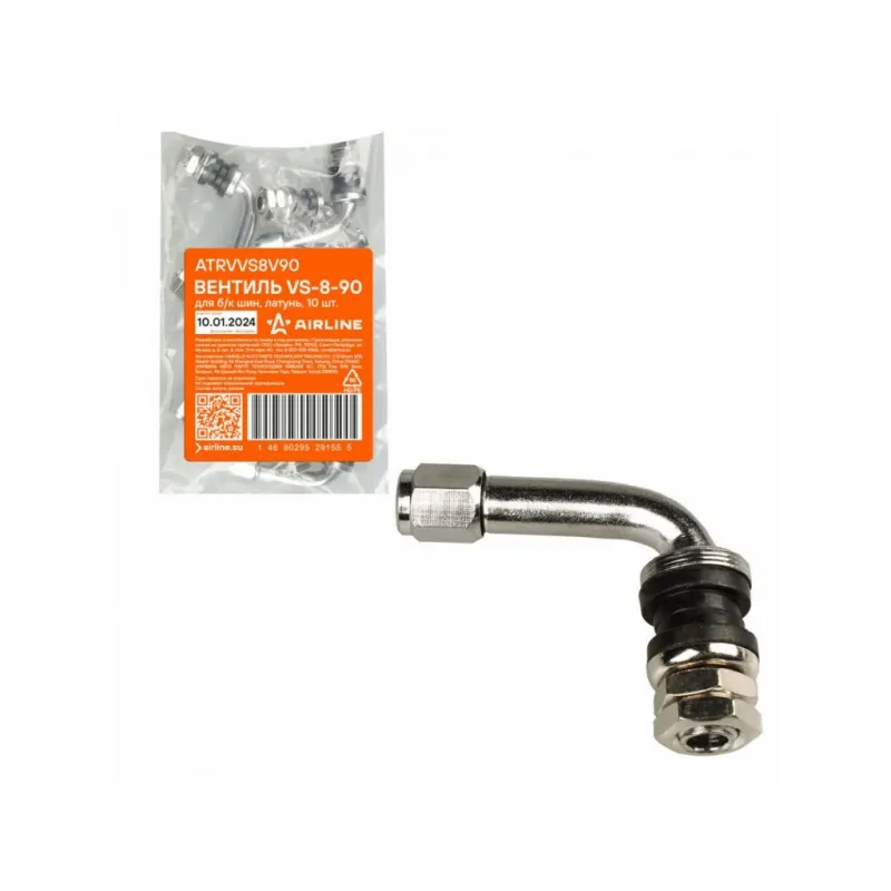 Вентиль для б/к шин VS-8-90, латунь Описание: Колесный шинный вентиль для бескамерных шин ATRVVS8V90 от бренда AIRLINE представляет собой комплект 10 шт обратный клапан и является главным расходным материалом для шиномонтажа, при ремонте и межсезонной смене шин легковых и грузовых автомобилей. Ниппель для бескамерных шин предназначен для нагнетания и удержания воздуха внутри шины. Корпус, золотник и колпачок выполнены из латуни, прокладка - из резины. Особенности: Диаметр отверстия в диске, 11,5 мм; Рабочее давление, 14 Bar; Длина вентиля, 65,5 мм; Обеспечивает высокую герметичность, прочность; Изготовлены из высококачественных материалов - Латунь, резина; Устойчивы к износу и коррозии; Удобен в использовании для профессионалов и любителей; Помимо автомобилей вентиля подходят для мотоциклов, квардроциклов, прицепов, снегоуборочной техники. Товар официального производителя AIRLINE. Характеристики: Артикул: ATRVVS8V90 Диаметр отверстия в диске, мм: 11,5 Рабочее давление, Bar: 14 Длина, мм: 65,5 Комплектация: Вентиль - 1 шт Гарантия: от 1 года.