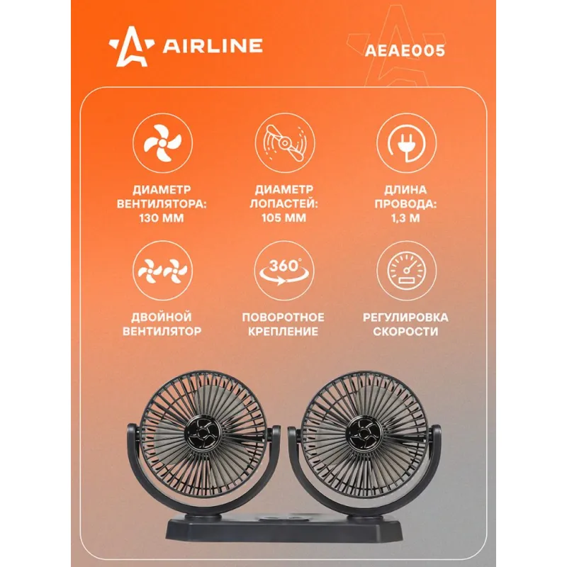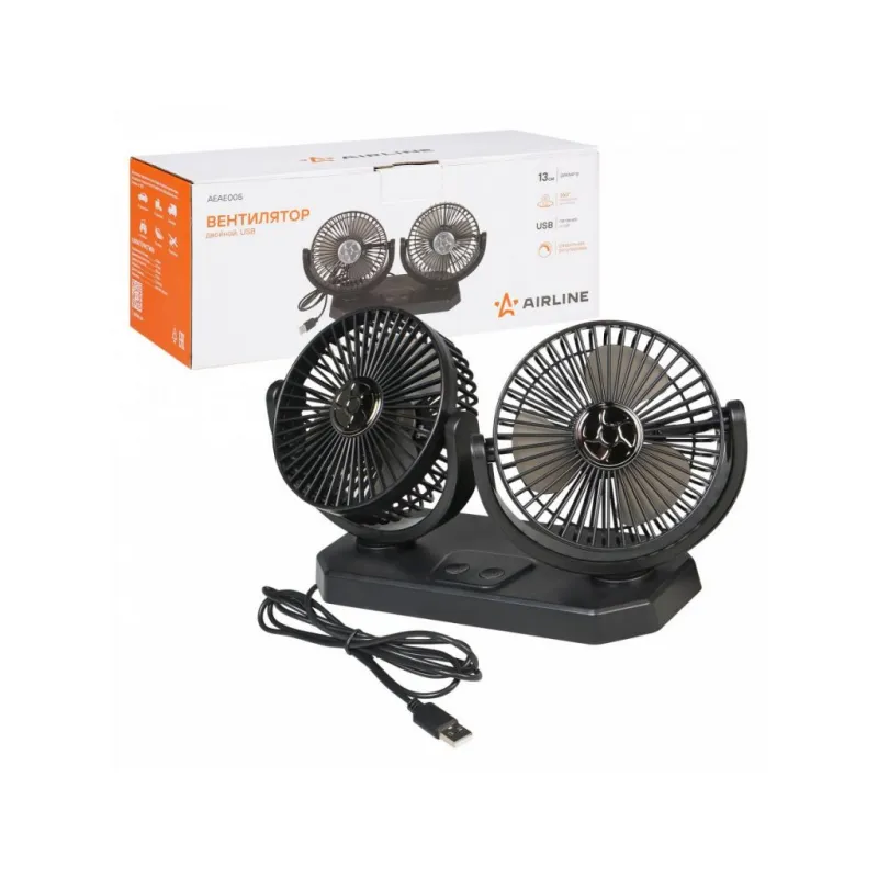 Вентилятор в салон двойной поворотный 360, 2x13см, 5В USB, раздельная регулировка, скотч Описание: Двойной вентилятор для автомобиля на липкой ленте — незаменимый помощник в жаркую погоду. Создает приятную прохладу в жаркую погоду, обеспечивая комфортные условия как для водителя, так и для пассажиров. Его легко прикрепить к панели приборов или любой другой поверхности с помощью липкой ленты. Лопасти устройства надежно защищены металлическим кожухом, что обеспечивает безопасность. Универсальный вентилятор подходит для использования в различных транспортных средствах, включая грузовики, автобусы, катера, тракторы и другие. Особенности: Поворотное крепление на 360 градусов — позволяет удобно направлять поток воздуха в нужную сторону. Выключатель питания и надежный штекер — обеспечивают безопасность и простоту использования. Мощный двигатель обеспечивает быстрое и равномерное распределение воздуха, создавая ощущение прохлады. Благодаря компактному и лёгкому дизайну, легко устанавливается на панели, не занимая много места. Подключение не требует дополнительных инструментов или сложных настроек. Этот стильный и компактный вентилятор станет отличным спутником в ваших повседневных поездках, особенно в жаркую летнюю погоду. Автомобильный вентилятор — превосходное решение для создания комфортного климата в салоне! Он поможет улучшить циркуляцию воздуха и станет отличным подарком для любого автолюбителя, будь то мужчина или женщина, отец, муж, парень или друг. Товар от официального производителя AIRLINE. Характеристики: Артикул: AEAE005 Мощность, Вт: 12 Длина провода, м: 1,3 Напряжение питания, В: 5 Диаметр вентилятора, мм: 130 Диаметр лопастей, мм: 105 Количество вентиляторов, шт: 2 Тип вентилятора: Осевой Комплектация: Вентилятор - 1 шт Картонная коробка - 1 шт Гарантия: от 1 года.