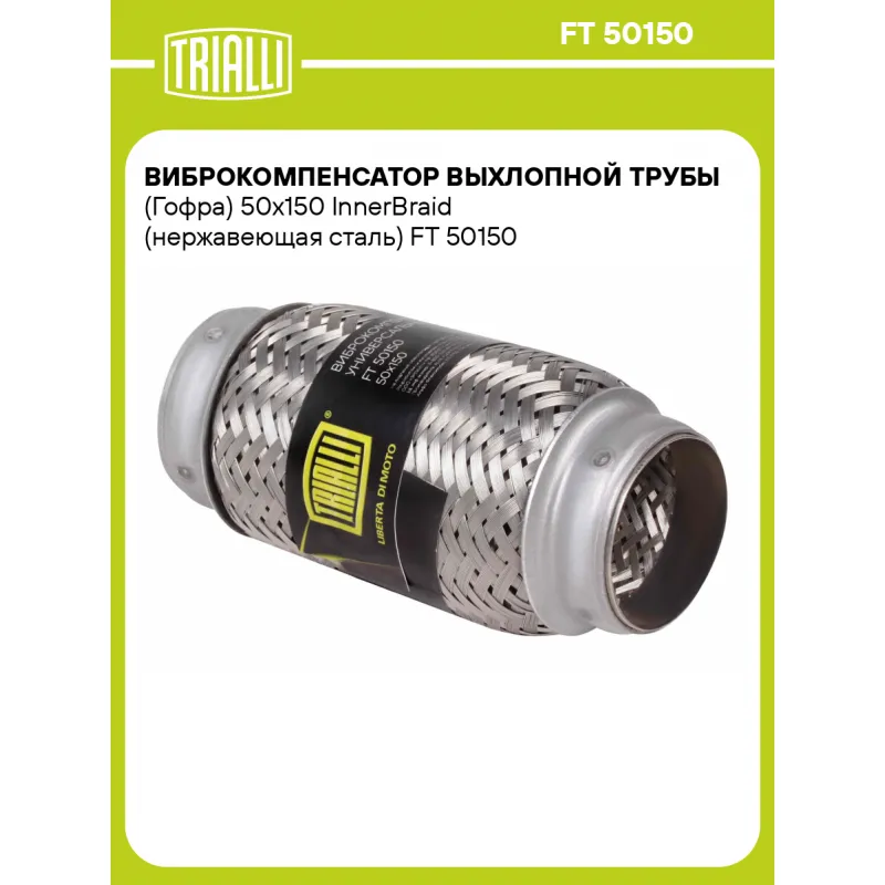 Виброкомпенсатор выхлопной трубы (Гофра) 50x150 InnerBraid (нержавеющая сталь) Характеристики: Артикул: FT 50150 OEM номера: 50x150 InnerBraid, 50x150, 50150, 50х150 Гарантийный срок: 2 года/60 тыс. Количество на автомобиль: 1 Тип конструкции: InnerBraid Особенности конструкции:: Трёхслойная Размер ID/NL, мм: 50/150 Под трубу диаметром, мм: 50-51 Длина изделия (мм): 150 Материал: Нержавеющая сталь марки AISI 201 Товарная линейка: BLACK Дополнительная информация: Этикетка изделия может отличаться от представленной на фото Комплектация: Виброкомпенсатор выхлопной трубы - 1 шт Гарантия: от 1 года.
