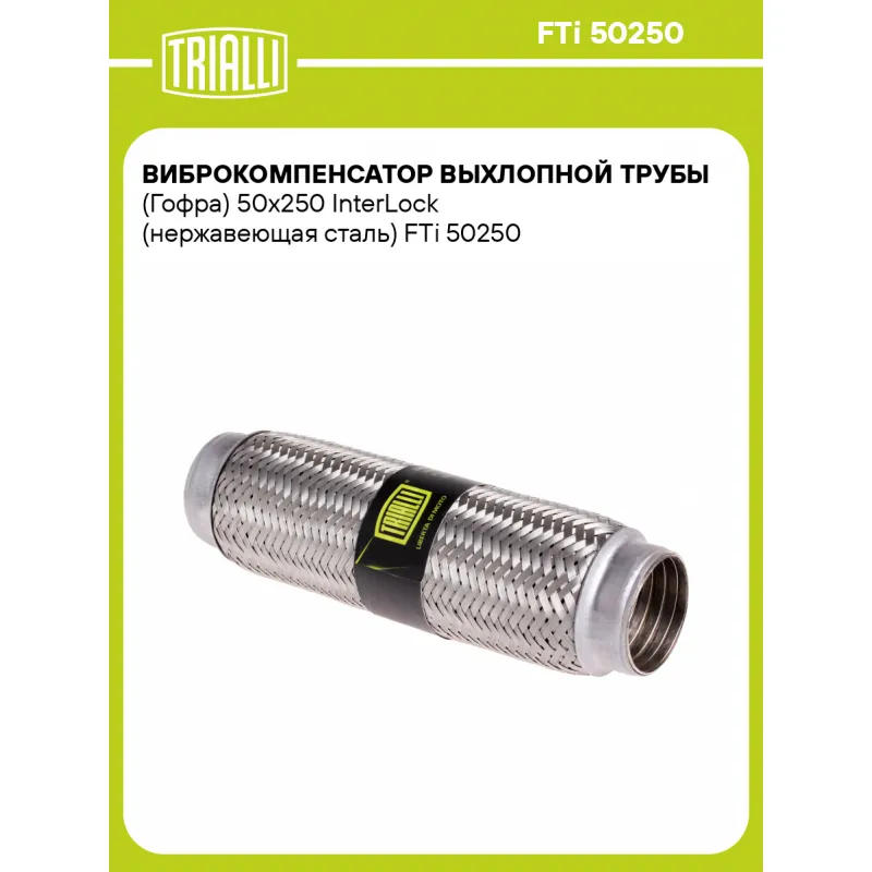 Виброкомпенсатор выхлопной трубы (Гофра) 50x250 InterLock (нержавеющая сталь) Характеристики: Артикул: FTi 50250 OEM номера: 50x250 Interlock, 50x250, 50250, 50х250 Гарантийный срок: 2 года/60 тыс. Количество на автомобиль: 1 Тип конструкции: Interlock Особенности конструкции:: Трёхслойная Размер ID/NL, мм: 50/250 Под трубу диаметром, мм: 50-51 Длина изделия (мм): 250 Материал: Нержавеющая сталь марки AISI 201 Товарная линейка: BLACK Дополнительная информация: Этикетка изделия может отличаться от представленной на фото Комплектация: Виброкомпенсатор выхлопной трубы - 1 шт Гарантия: от 1 года.