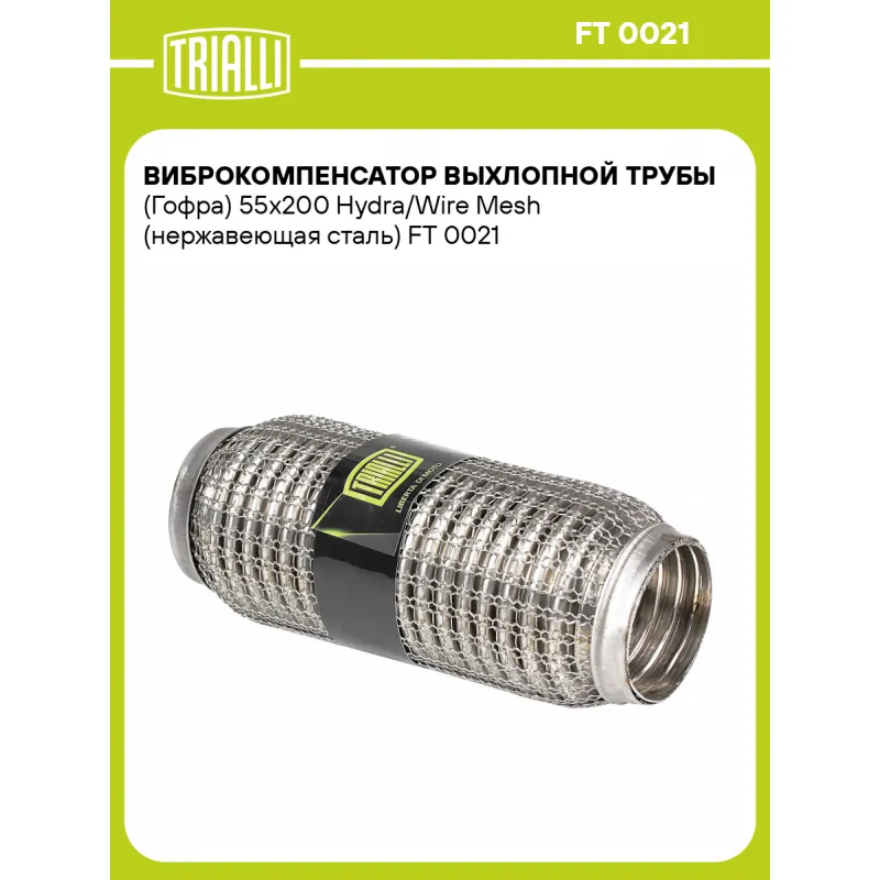 Виброкомпенсатор выхлопной трубы (Гофра) 55x200 Hydra/Wire Mesh (нержавеющая сталь) Характеристики: Артикул: FT 0021 OEM номера: 55x200, 55200 Гарантийный срок: 2 года/60 тыс. Количество на автомобиль: 1 Тип конструкции: Wire Mesh / Hydra Особенности конструкции:: Трёхслойная Размер ID/NL, мм: 55/200 Под трубу диаметром, мм: 54-55 Длина изделия (мм): 200 Материал: Нержавеющая сталь марки AISI 201 Товарная линейка: BLACK Дополнительная информация: Этикетка изделия может отличаться от представленной на фото Комплектация: Виброкомпенсатор выхлопной трубы - 1 шт Гарантия: от 1 года.