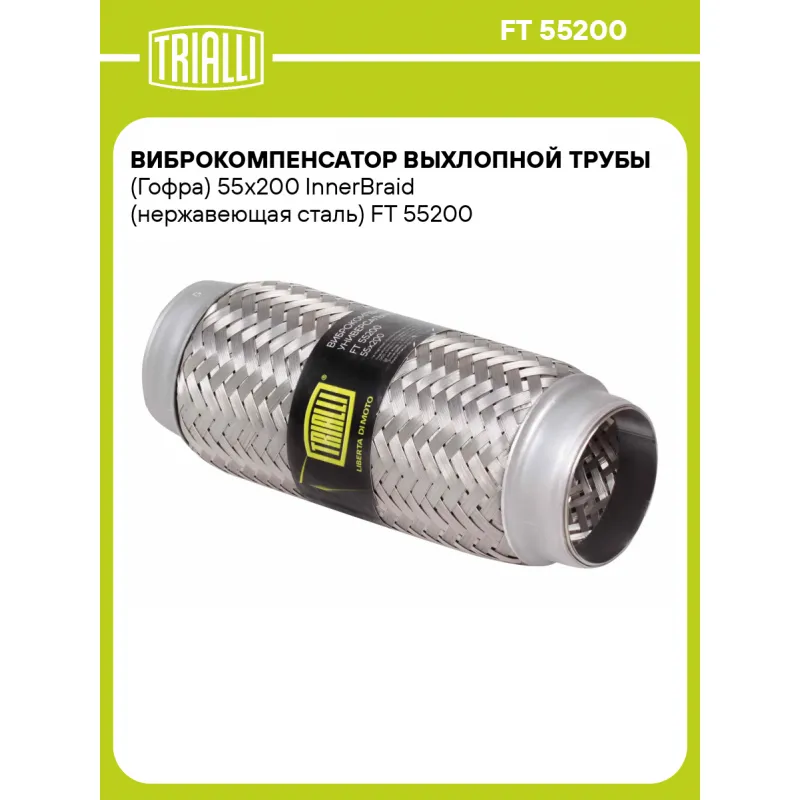 Виброкомпенсатор выхлопной трубы (Гофра) 55x200 InnerBraid (нержавеющая сталь) Характеристики: Артикул: FT 55200 OEM номера: 55x200 InnerBraid, 55x200, 55200, 55х200 Гарантийный срок: 2 года/60 тыс. Количество на автомобиль: 1 Тип конструкции: InnerBraid Особенности конструкции:: Трёхслойная Размер ID/NL, мм: 55/200 Под трубу диаметром, мм: 54-55 Длина изделия (мм): 200 Материал: Нержавеющая сталь марки AISI 201 Товарная линейка: BLACK Дополнительная информация: Этикетка изделия может отличаться от представленной на фото Комплектация: Виброкомпенсатор выхлопной трубы - 1 шт Гарантия: от 1 года.