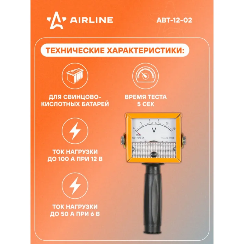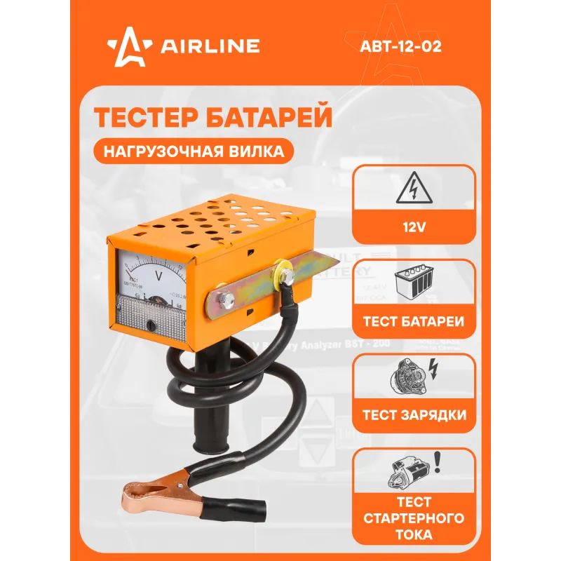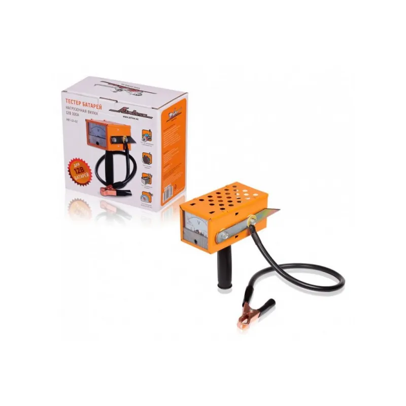 Вилка нагрузочная (Тестер батарей) Описание: Большой аналоговый вольтметр для облегчения считывания показаний. Два контактных электрода, упрощающих использование прибора. Наличие защиты вольтметра от нагрева при измерениях. Характеристики: Артикул: ABT-12-02 OEM номера: 40602 Номинальное напряжение, В: 12 Тип тестируемых аккумуляторных батарей: свинцово-кислотные Время измерения без нагрузки, с: не ограничено Время измерения под нагрузкой, с: не более 5 Диапазон измерений, В: 0-15 Ёмкость тестируемых АКБ, Ач: до 190 Номинальное сопротивление, Ом: 0.1 +/- 10% Рабочий диапазон температур, °C: -35 - +50 Ток нагрузки при напряжении батареи 12В, А: 100 Точность измерений, %: 2.5 Комплектация: Вилка нагрузочная - 1 шт Инструкция - 1 шт Коробка - 1 шт Гарантия: от 1 года.