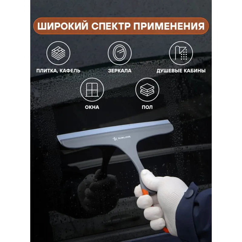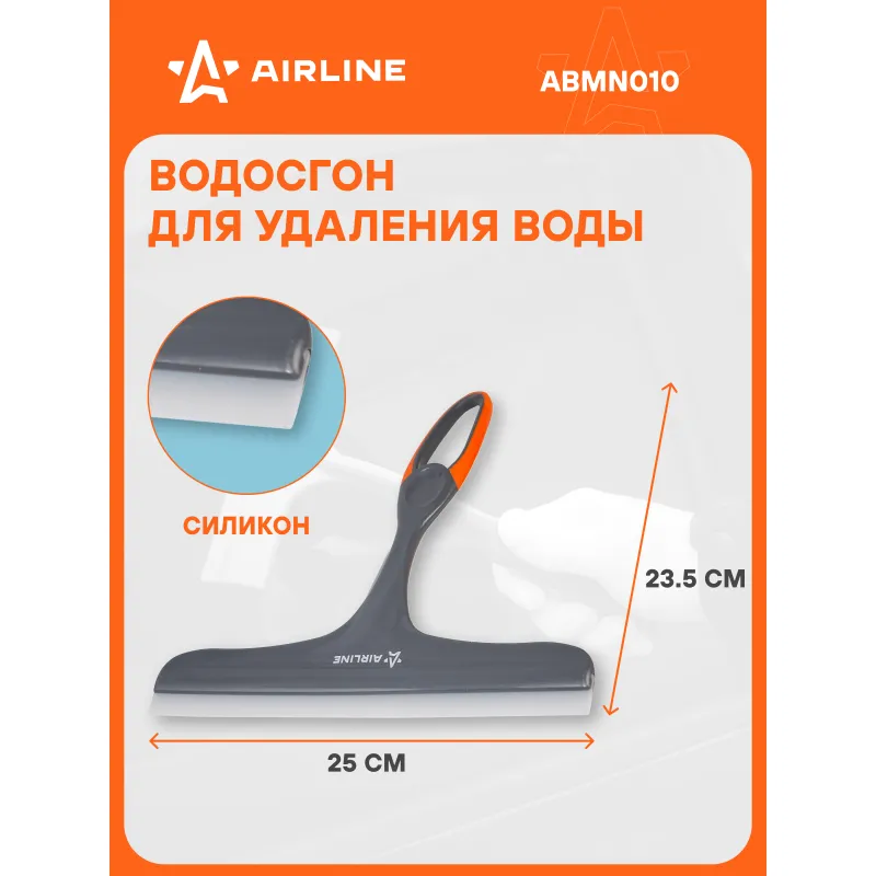 Водосгон с силиконовым лезвием (25 см) Описание: Многофункциональный водосгон из высококачественного износостойкого силикона легко очистит автомобильные стекла, окна и зеркала, а также ламинат, плитку и другие гладкие поверхности, включая душевые стекла и подойдет как для уборки на бытовом, так и на профессиональном уровне. Водосгон данной модели бренда AIRLINE ABMN010 отличается компактными размерами и привлекательным дизайном. Ширина рабочей поверхности изделия составляет 250 мм, что позволяет успешно использовать водосгон в бытовых целях и без затруднений хранить в салоне автомобиля. Водосгон отличается привлекательным дизайном с фирменными серо-оранжевыми цветами AIRLINE. Эргономичная легкая ручка стеклоочистителя делает чистку быстрой, легкой и удобной. Силиконовый скребок устойчив к плесени, хорошо соприкасается с очищаемой поверхностью и быстро и эффективно стягивает воду и мыльную пленку. Скребок для авто подойдет для подарка не только автовладельцу, так как всегда найдет применение в быту. Сделайте полезный подарок мужу, другу, жене, на 23 февраля, 8 марта, новый год. В линейке AIRLINE, вы найдете широкий ассортимент высококачественных автотоваров и средств по уходу за вашим автомобилем щетки для окон, водосгоны, скребки, швабры. Мы гарантируем качество и надежность наших товаров. Характеристики: Артикул: ABMN010 OEM номера: KT 835222, CA-980 Длина лезвия, мм: 250 Материал лезвия: силикон Комплектация: Водосгон с цветным воблером - 1 шт Гарантия: от 1 года.