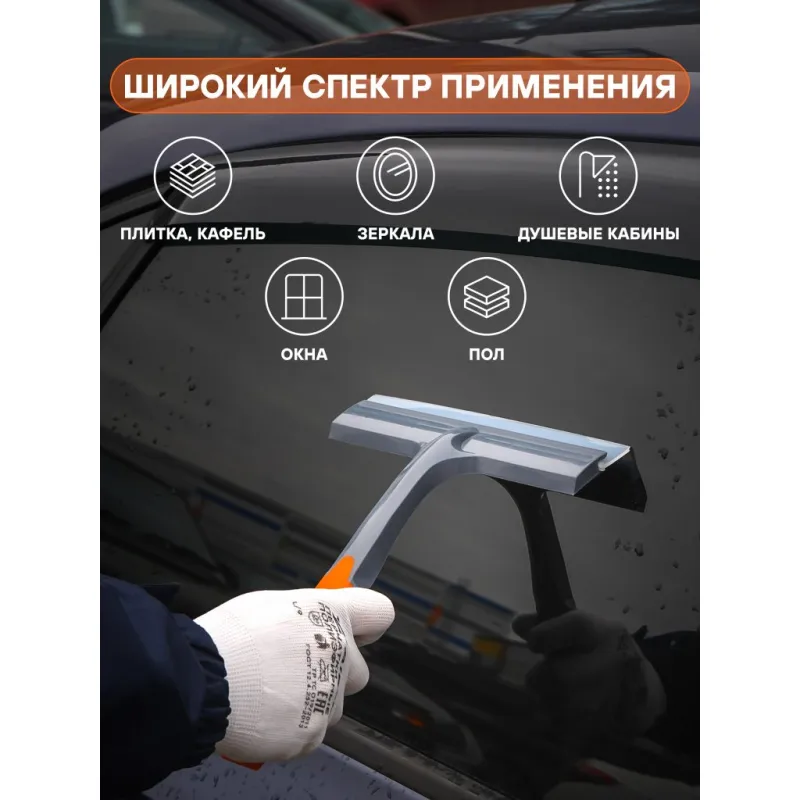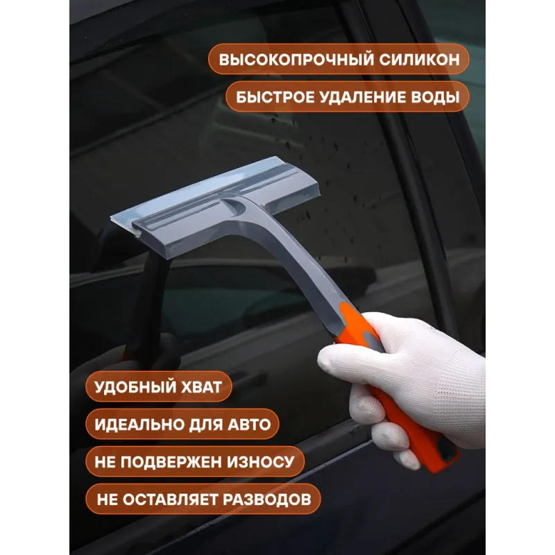 Водосгон силиконовый для удаления воды (21 см) Описание: Многофункциональный водосгон из высококачественного износостойкого силикона легко очистит автомобильные стекла, окна и зеркала, а также ламинат, плитку и другие гладкие поверхности, включая душевые стекла и подойдет как для уборки на бытовом, так и на профессиональном уровне. Водосгон данной модели бренда AIRLINE AB-M-06 отличается компактными размерами и привлекательным дизайном. Ширина рабочей поверхности изделия составляет 210 мм, что позволяет успешно использовать водосгон в бытовых целях и без затруднений хранить в салоне автомобиля. Водосгон отличается привлекательным дизайном с фирменными серо-оранжевыми цветами AIRLINE. Эргономичная легкая ручка стеклоочистителя делает чистку быстрой, легкой и удобной. Силиконовый скребок устойчив к плесени, хорошо соприкасается с очищаемой поверхностью и быстро и эффективно стягивает воду и мыльную пленку. Износостойкая резина гарантирует длительный срок эксплуатации скребка. Водосгон в автомобиль повысит уровень комфорта во время путешествий и ежедневных поездок, а также найдет применение в быту, поэтому станет нужным полезным подарком автомобилисту, мужу, папе, бату, дяде, жене, маме, сестре, тете, коллеге на 23 февраля, 8 марта, новый год. В линейке AIRLINE, вы найдете широкий ассортимент высококачественных автотоваров и средств по уходу за вашим автомобилем, щетки для окон, водосгоны, скребки, швабры. Мы гарантируем качество и надежность наших товаров. Характеристики: Артикул: AB-M-06 Длина лезвия, мм: 210 Материал лезвия: силикон Комплектация: Водосгон силиконовый 21см. с цветным воблером - 1 шт Гарантия: от 1 года.