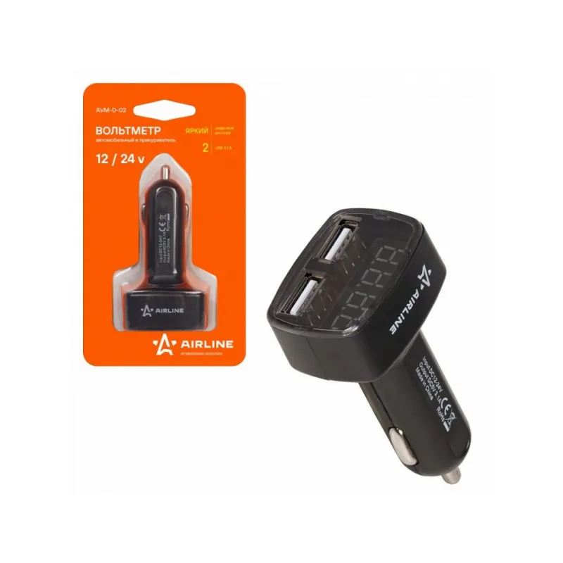 Вольтметр + 2USB 3,1A в прикуриватель 12-24В Описание: Подключается в гнездо прикуривателя автомобиля (12/24 В). Позволяет контролировать состояние аккумулятора и работу генератора. Помогает выявлять проблемы с аккумуляторной батареей и генератором на ранней стадии их возникновения. Позволяет заряжать гаджеты от встроенных розеток USB. Характеристики: Артикул: AVM-D-02 Номинальное напряжение, В: 12-24 Параметры USB: 5В, 3.1А Цвет индикаторов: Красный Комплектация: Вольтметр в блистере - 1 шт Гарантия: от 1 года.