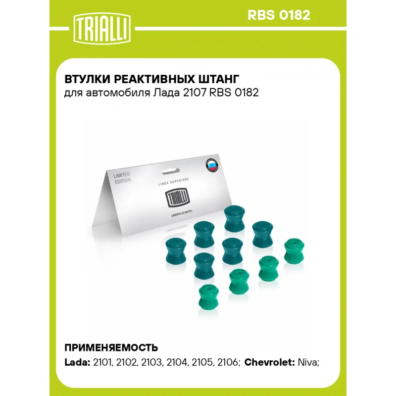 Втулки реактивных штанг для автомобиля Лада 2107 Характеристики: Артикул: RBS 0182 OEM номера: 2101-2919042, 2101-2919108, 21010-2919042-00, 21010-2919108-00 Гарантийный срок: 1 года/30 000 км Товарная линейка: PRO Количество на автомобиль: 1 Материал: Полиуретан Ось (сторона установки): Сзади, слева/справа Дополнительная информация: Цвет изделия, может отличаться от представленного на фото Количество деталей в артикуле, шт.: 10 Подходит для авто: ВАЗ 2101, 2101, 2102, 2102, 2103, 2103, 2104, 2105, 2105, 2106, 2106, 2107, 2121, 21213, 2131, 2104, 2105, 2107, 21213, 2131, 2120, 2123 Chevrolet Niva (02-) Для проверки применяемости отправьте VIN автомобиля через вкладку "Есть вопросы о товаре?" Гарантия: от 1 года.